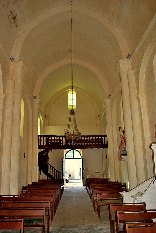 L'église Saint-Palais, située à Saint-Palais-de-Phiolin (Charente-Maritime), est placée sous le vocable de saint Pallais, évêque de Saintes au VIe siècle. Elle présente une nef unique de trois travées séparées par des groupes de colonnes et des contre‑pilastres. Le sanctuaire est voûté en berceau et l'abside en cul‑de‑four. Le soubassement de l'abside comporte une série d'arceaux reposant sur une colonnade dont les chapiteaux sont moulurés. La façade occidentale s'ouvre par un portail à quatre archivoltes couronné de couvre‑joints sculptés. Deux pilastres d'angle encadrent, au premier étage, une colonnade à quatre arcatures. Le clocher carré a été reconstruit en 1860. L'édifice est classé au titre des monuments historiques par arrêté du 15 novembre 1913.