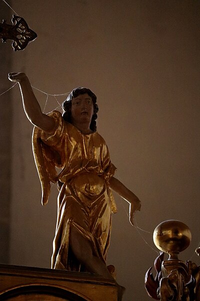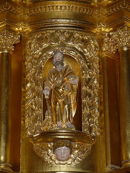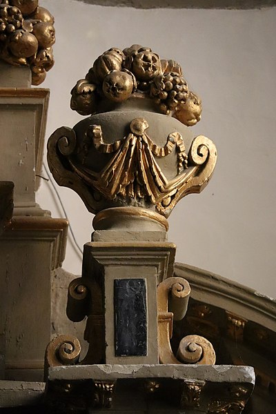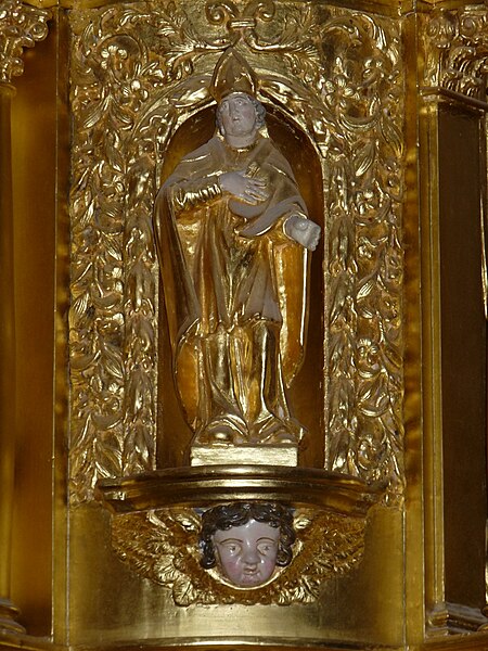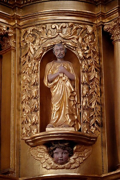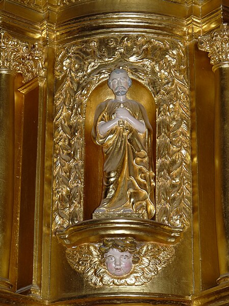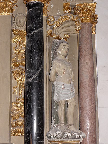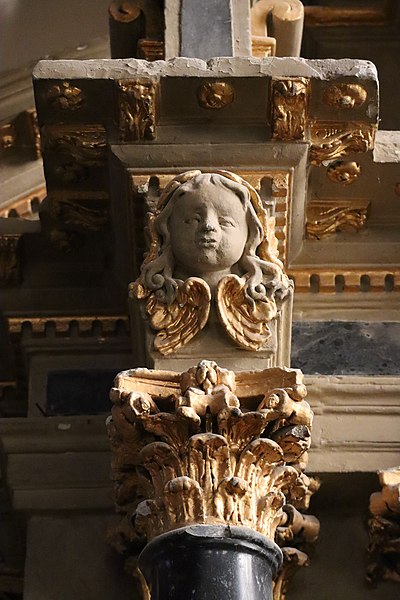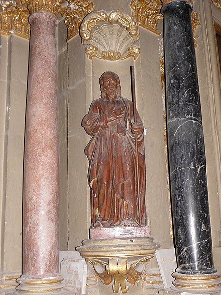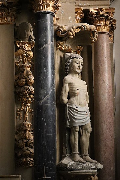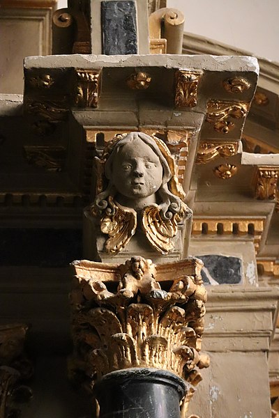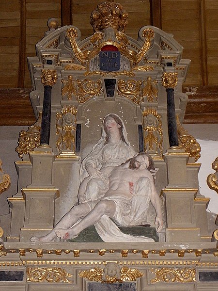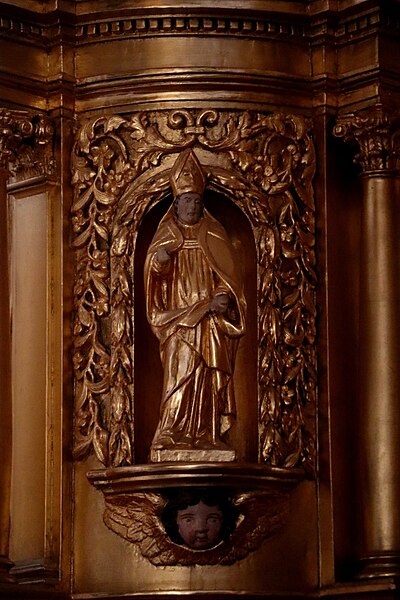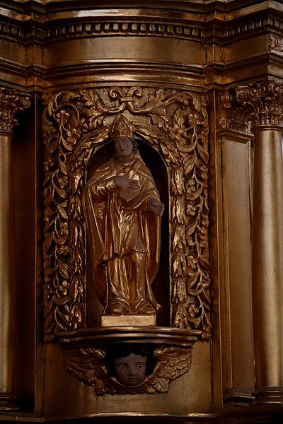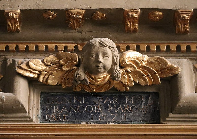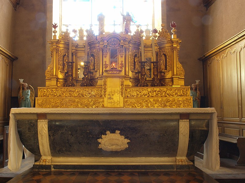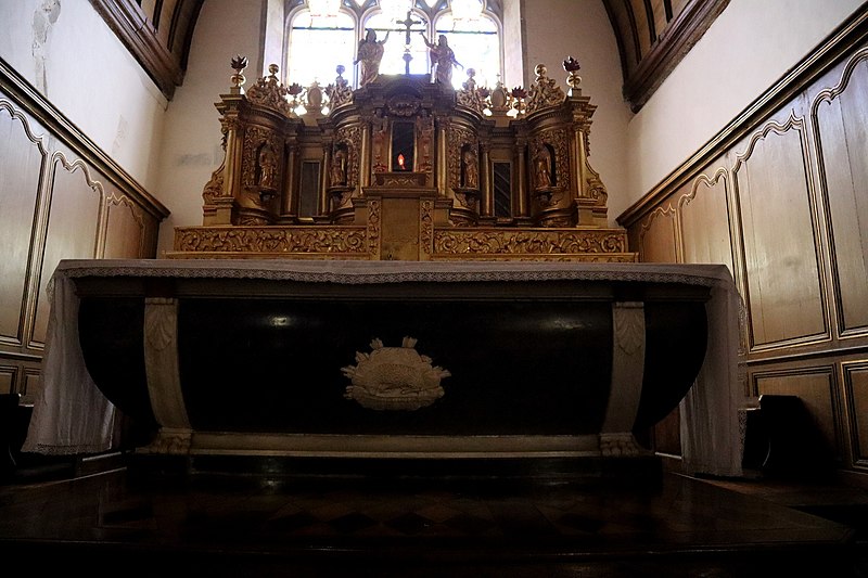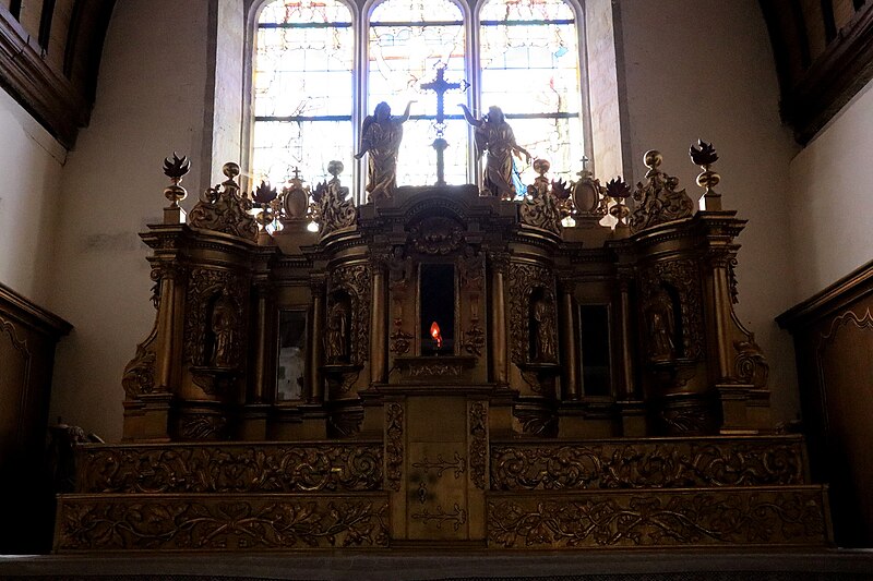 Le mobilier est riche et en grande partie protégé : le maître‑autel associe un tombeau de marbre noir orné de l'agneau immolé, vraisemblablement du début du XIXe siècle, et un retable de bois doré à trois miroirs de la fin du XVIIe siècle ; le retable et le tabernacle sont classés depuis le 18 décembre 1946, le tabernacle étant du XIXe siècle. Dans les transepts, l'autel et retable nord (1653) présentent un tableau de la dation du rosaire à saint Dominique et masquent partiellement un retable gothique flamboyant, tandis que l'autel et retable sud (1671) offrent un tableau de l'Éducation de la Vierge et sont surmontés d'une Vierge de Pitié en terre cuite réalisée en 1785 par Pierre Taveau ; ces ensembles sont classés depuis le 11 mai 1907. Les fonts baptismaux, exécutés en 1782 par le marbrier Étienne Duval et le ferronnier Noyer, sont classés depuis le 23 décembre 1943.