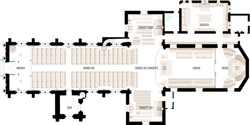 L'église possède deux instruments : un grand orgue de tribune installé sur une tribune de 1892 et inauguré en 1904, réalisé par la maison Cavaillé‑Coll sous la direction de Charles Mutin à partir d'éléments d'un orgue antérieur de Joseph Merklin, et un orgue de chœur constitué d'un harmonium d'accompagnement. Les vitraux de la nef nord illustrent la diffusion de la grâce par les sacrements en dix tableaux ; les quatre baies du sud racontent la vie et la glorification de saint Patrice, et la baie de la façade ouest représente le Christ prêchant en Judée.