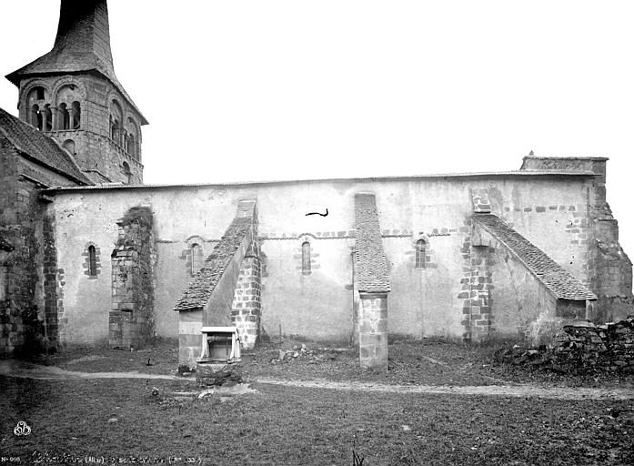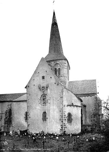 L'abside romane fut remplacée au XVe siècle par un chœur rectangulaire voûté sur croisées d'ogives prismatiques reposant sur des culots sculptés, et de gros contreforts furent édifiés pour remplacer les contreforts romans. Aux XVIe ou XVIIe siècles, les couvertures plates au-dessus des voûtes du chœur et du transept furent remplacées par de hauts combles à charpente couverts de tuiles plates. À la fin du Moyen Âge, le bras nord du transept fut surélevé pour aménager un dispositif fortifié ; il subsiste des restes de bretèche sur les deux pignons du transept. Une sacristie fut ajoutée dans l'axe du chœur au XIXe siècle.