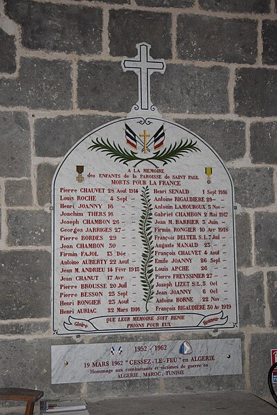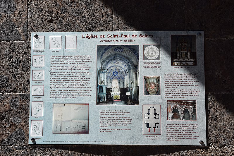 L’église Saint‑Paul se situe à Saint‑Paul‑de‑Salers (Cantal), en région Auvergne‑Rhône‑Alpes, France. Le chœur et le chevet sont romans, datés de la fin du XIIe siècle. La nef, de style gothique, a été édifiée aux XIVe et XVe siècles et est voûtée en berceau continu. Deux chapelles latérales, datées des XVe‑XVIe siècles, sont voûtées d’ogives et présentent des clés armoriées. Au‑dessus du portail gothique s’élève un clocher‑porche de style néoclassique, daté de 1851. L’intérieur conserve un décor comprenant peintures murales, boiseries et stalles ainsi que du mobilier sculpté. L’église est inscrite au titre des monuments historiques par arrêté du 19 mai 2003.