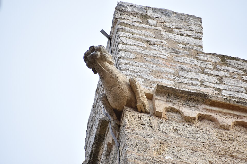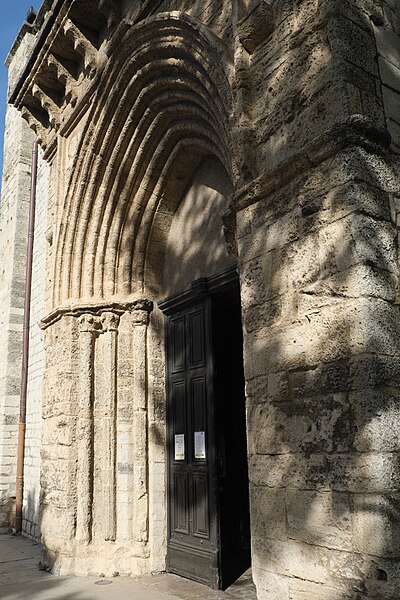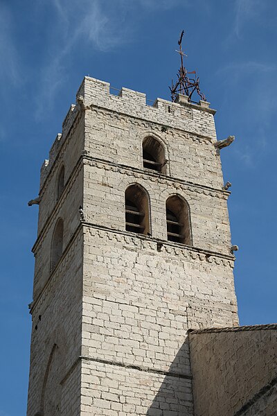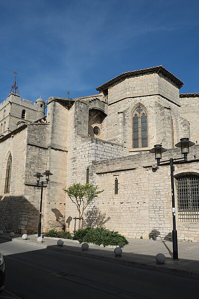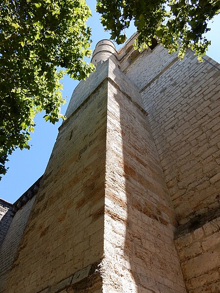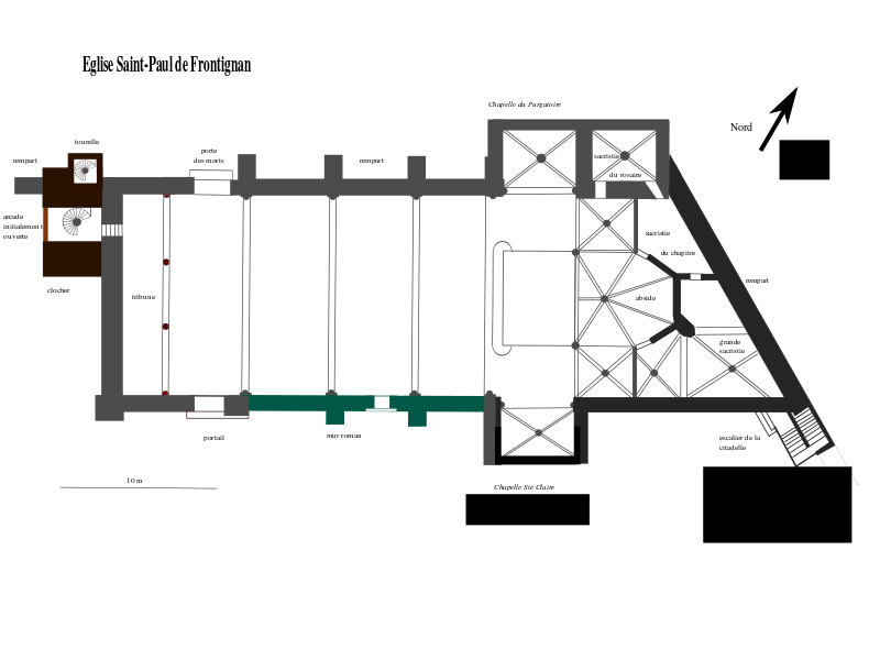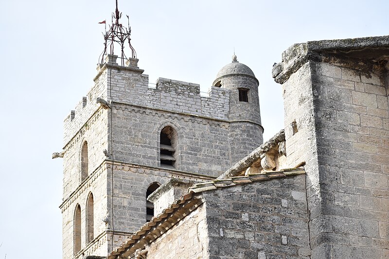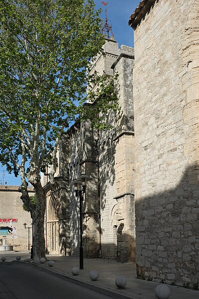 L'église Saint‑Paul de Frontignan, située au nord et légèrement à l'extérieur du noyau ancien de la ville près de l'ancien château devenu l'hôtel de ville, s'appuie en partie sur les anciens remparts dont le mur nord était incorporé. L'édifice se compose d'une nef voûtée en berceau brisé, d'un chœur à abside polygonale flanqué de deux chapelles latérales formant un faux transept, et d'un clocher en saillie sur la façade ouest ; la nef compte quatre travées, une cinquième ayant été supprimée lors de l'ouverture des chapelles. Les murs de la nef datent du XIIe siècle et conservent une corniche extérieure à arcatures sur corbelets ; la nef fut surélevée au XIVe siècle et reçut à cette époque une nouvelle corniche, tandis que la voûte, le chœur, les chapelles latérales et les sacristies semblent relever de la même campagne de travaux. Le clocher, conçu à l'origine comme un donjon, a été aménagé ensuite et son sommet refait au XVIe siècle ; il présente des cordons marquant ses étages, une échauguette au nord, une tourelle carrée prolongée par une tourelle circulaire et abrite aujourd'hui cinq cloches. La face ouest montre de grandes arcatures à arc brisé et des mâchicoulis partiellement masqués par le clocher, et la face est du clocher porte de nombreux impacts d'arquebuse en souvenir des combats des guerres de religion. Une première église, attestée en 1109 sous le vocable de Saint‑Pierre puis de Saint‑Pierre‑Saint‑Paul, a laissé la base du mur sud de l'édifice actuel ; parmi les vestiges romans figurent l'arcature lombarde, une porte au tympan et linteau monolithes récemment rouverte, ainsi que deux petites fenêtres romanes restituées lors des restaurations. L'église fut probablement reconstruite au XIVe siècle puis en grande partie détruite lors du raid de Seguin de Badefol en 1361 ; en 1363 le roi autorisa la reconstruction des murailles et l'édifice fut relevé et intégré dans l'enceinte urbaine. Pendant les guerres de religion, les Protestants s'emparèrent de la ville et causèrent des dégâts importants aux autels, images, ornements et fonts baptismaux ; un conseil de guerre tenu à Montpellier le 18 août 1562 décida la reprise de la ville, où la résistance fut opiniâtre et le siège levé après de lourdes pertes. Les visites pastorales des XVIe et XVIIe siècles mentionnent encore des réparations à la couverture, traduisant l'entretien contraint par ces événements. Au XIXe siècle une fausse voûte fut élevée sur la nef et deux fenêtres ouvertes dans le mur sud ; au XXe siècle cette voûte a été supprimée et des pannes peintes mises au jour, dix d'entre elles ayant été réemployées dans la charpente apparente qui couvre aujourd'hui la nef. La nef comporte trois fenêtres au nord et deux au sud, agrandies au XIXe siècle, et la clé de voûte de l'abside est un tore arrondi sans écu historié ; deux absidioles à chevet plat entourent l'abside et des œils de bœuf s'ouvrent de part et d'autre de l'arc triomphal. Le mur ouest conserve une fenêtre aveuglée lors de l'édification du donjon et deux inscriptions datées de 1653–1654. Au nord, la chapelle sert de base à une citadelle élevée au‑dessus de la sacristie du Rosaire ; le premier étage de cette citadelle a été utilisé comme logement du vicaire et l'ensemble présente encore les restes d'une échauguette et un chemin de ronde protégeant le chevet. Trois sacristies complètent l'édifice : la sacristie du Rosaire, voûtée en croisée d'ogive barlongue et liée à la confrérie homonyme, la sacristie du Chapitre, adossée à l'abside et dotée d'une niche de statue, et la sacristie de l'Œuvre, également voûtée en croisée d'ogive. L'intérieur conserve une solive peinte du Moyen Âge représentant Jacques Ier d'Aragon, tandis que le dallage du XVIIe siècle a été remplacé en 2013 et le sol surélevé. L'orgue, provenant de l'atelier Théodore Puget et acquis par la fabrique en 1880, a fait l'objet de restaurations en 1950 par Maurice Puget puis d'une restauration intégrale en 1979 par Gérald Guillemin ; il compte deux claviers, un pédalier et vingt jeux. Classée au titre des monuments historiques depuis le 7 juin 1919, l'église témoigne des nombreuses phases de construction, des destructions liées aux conflits et des restaurations qui ont façonné son architecture actuelle.