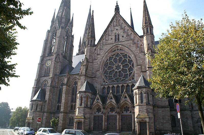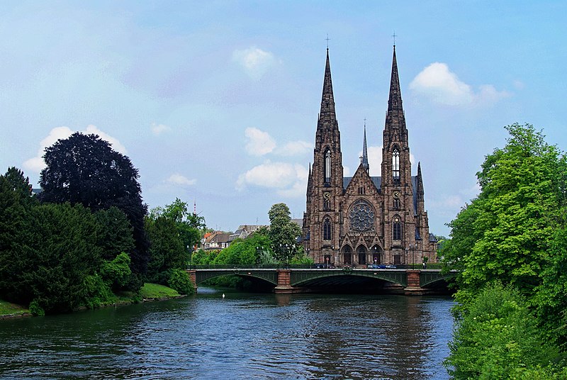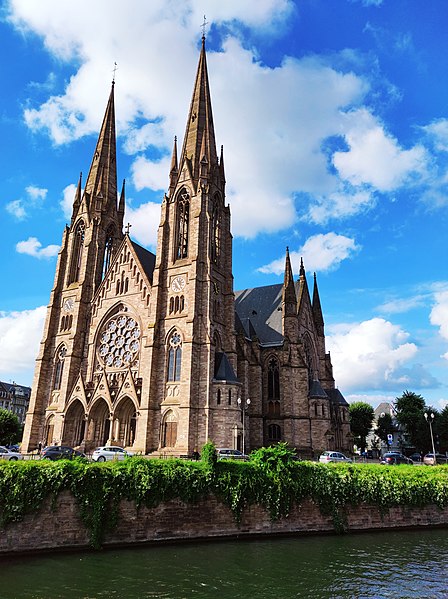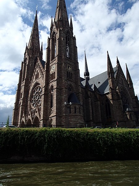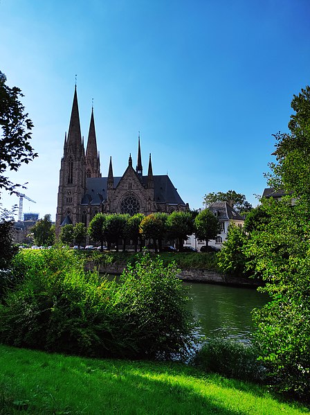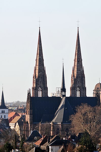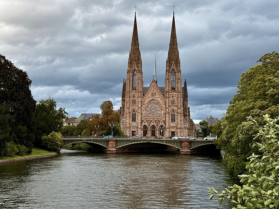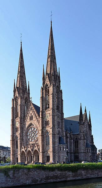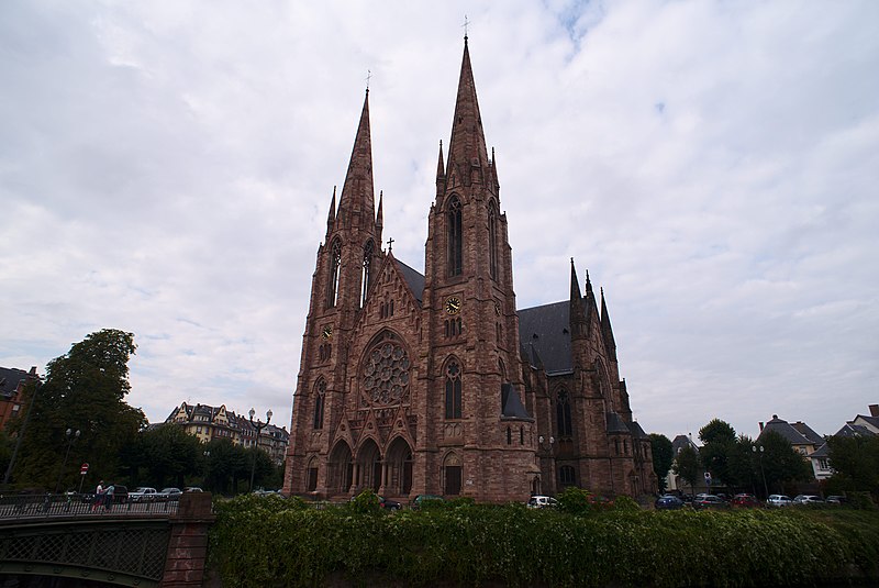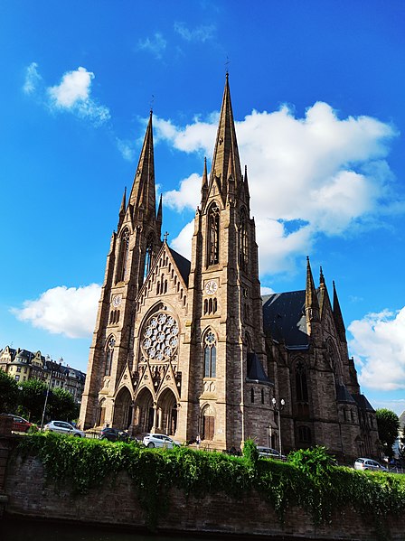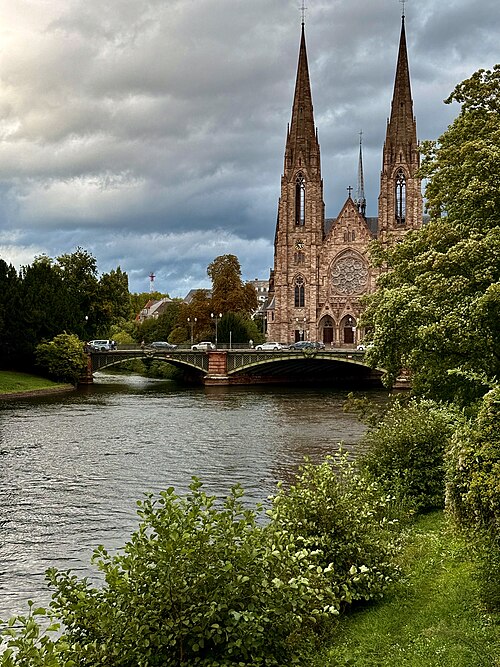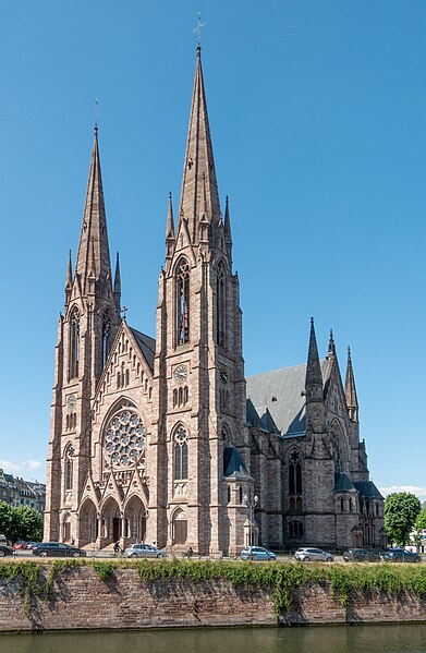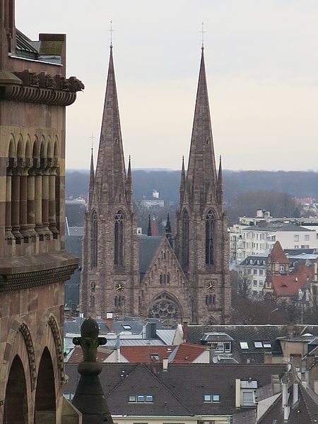 L'église réformée Saint-Paul se dresse sur l'îlot Sainte-Hélène, à la pointe sud, au confluent de l'Ill et de l'Aar, à l'intersection des quais Zorn et Mullenheim dans la Neustadt de Strasbourg. Confiée à l'architecte Louis Müller, sa construction s'est déroulée entre 1892 et 1897 dans le cadre de l'aménagement de la Neustadt. Conçue pour la garnison allemande protestante du Deuxième Reich, elle est aujourd'hui le siège de la deuxième paroisse réformée de Strasbourg. Classée au titre des monuments historiques depuis le 4 mai 1998, elle s'inscrit dans l'axe impérial formé par l'avenue de la Liberté. De style néo-gothique, le temple affiche deux flèches jumelles effilées culminant à 76 mètres et un volume qui évoque une cathédrale gothique. Pouvant accueillir près de 3 000 fidèles, l'édifice s'apparente à une église-halle à plan central en croix grecque avec une nef volontairement raccourcie pour répondre aux exigences du culte protestant. Des tribunes au-dessus des nefs collatérales et des croisillons doublent les places et assurent l'audibilité d'environ 2 000 fidèles. De part et d'autre du chœur se trouvent deux loges, l'une ayant été destinée au couple impérial, l'autre au représentant de l'Empire. La nef, le transept et le chœur sont couverts de voûtes sur croisées d'ogives et ornés de peintures : anges dans le chœur, le Tétramorphe à la croisée du transept et, dans le narthex, les bustes des réformateurs Luther, Calvin, Zwingli et Melanchthon. Louis Müller a également conçu l'équipement intérieur ; le retable d'autel, peu apprécié par les réformés, fut échangé avec la paroisse luthérienne de Sarreguemines contre une grande croix en bois. Les vitrages des parties orientales furent soufflés par les bombardements de 1944, à l'exception du croisillon sud où subsistent des écus armoriés de l'Empire et des États fédérés. Cinq vitraux figuratifs du chœur, œuvres du frère Éric de Saussure, représentent le Christ en gloire, la Genèse et l'Ancien Testament, l'Église et l'Apocalypse. Le grand orgue de tribune, réalisé en 1897 par Eberhard Friedrich Walcker d'après les plans d'Ernest Münch et Wilhelm Sering, possède un vaste buffet néo-gothique. Modifié à plusieurs reprises (1899, 1907, 1912) et agrandi en 1933-1934 par Beuchet, l'orgue a vu ses tuyaux de façade réquisitionnés en 1917 et recevoir une façade provisoire en zinc en 1918. Des travaux successifs, un incendie du moteur en 1931 et des interventions postérieures ont affecté l'homogénéité sonore de l'instrument ; en 1957 Alfred Kern posa une nouvelle console en rendant muets vingt-et-un jeux. Un projet de restauration visant à retrouver l'état de 1934 fut lancé en 1983 et les travaux confiés à la maison Walcker débutèrent en 1993 ; la partie instrumentale est classée monument historique depuis le 14 avril 1987 et le buffet est inscrit depuis 1995. Un orgue de transept, plus modeste, a été installé en 1976 par Marc Garnier dans l'ancienne loge impériale ; de style nordique et inspiré du XVIIe siècle, il est un orgue mésotonique moderne, adapté à l'accompagnement du chant, et dispose de manettes modifiant certains demi-tons. La chapelle arrière détruite en 1944 a été reconstruite dans un style contemporain des années 1950-1960, et les flèches et la façade ont fait l'objet d'une restauration intégrale entre 2009 et 2014, le parvis étant réaménagé en 2014.