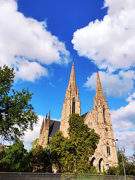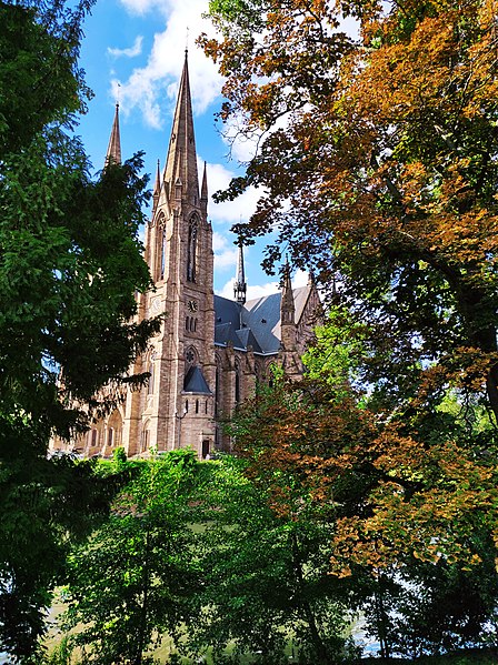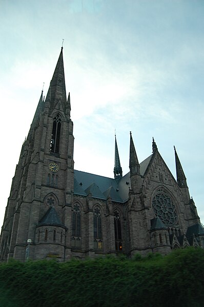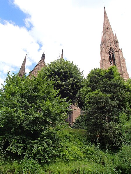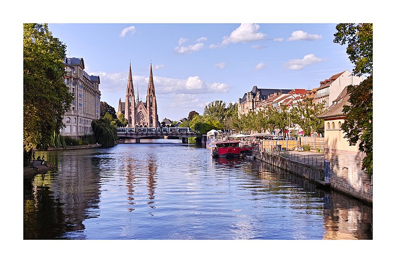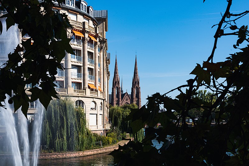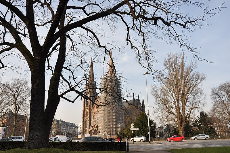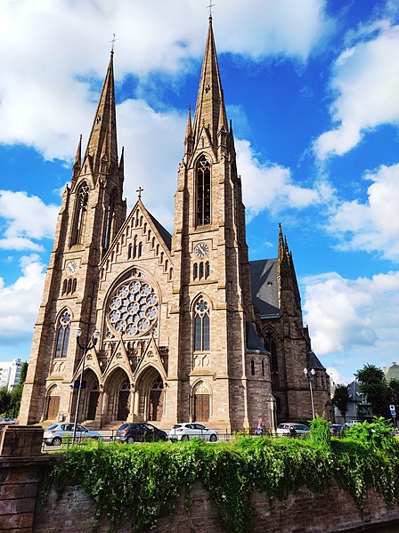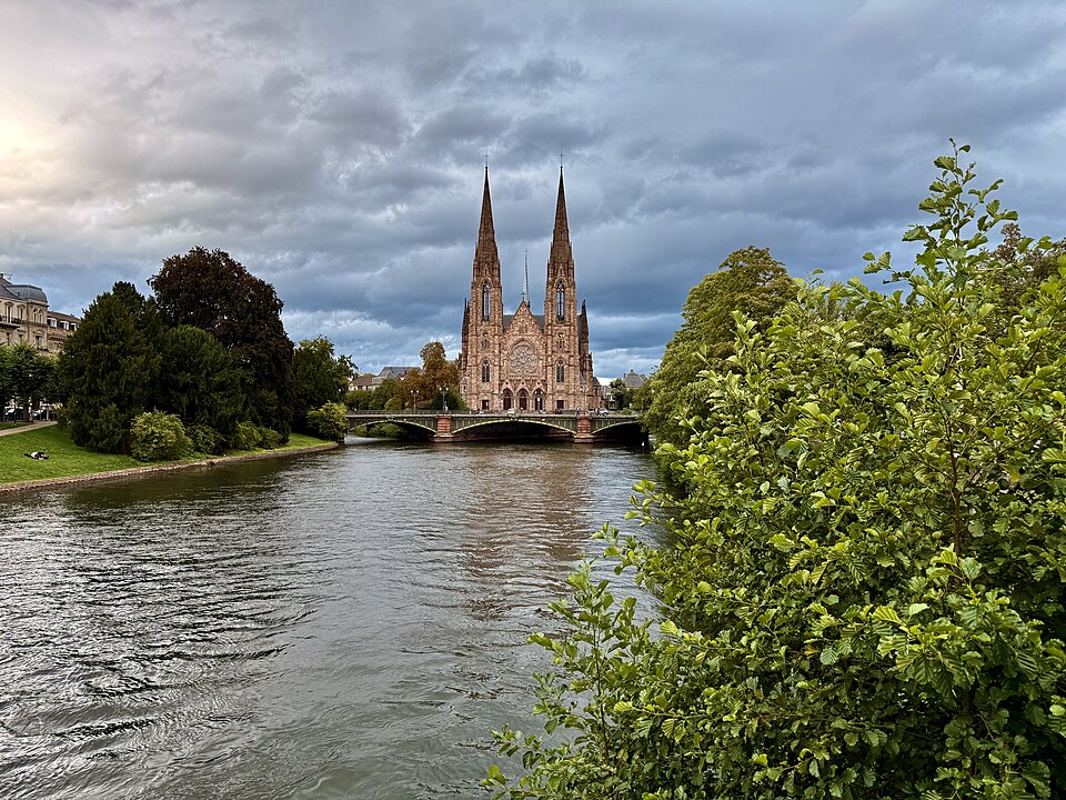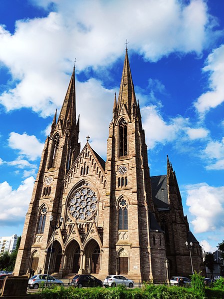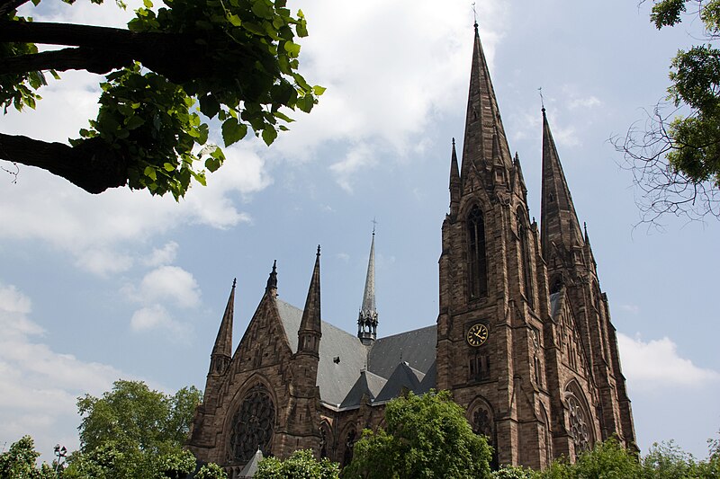 L'église réformée Saint-Paul se dresse sur l'îlot Sainte-Hélène, à la pointe sud, au confluent de l'Ill et de l'Aar, à l'intersection des quais Zorn et Mullenheim dans la Neustadt de Strasbourg. Confiée à l'architecte Louis Müller, sa construction s'est déroulée entre 1892 et 1897 dans le cadre de l'aménagement de la Neustadt. Conçue pour la garnison allemande protestante du Deuxième Reich, elle est aujourd'hui le siège de la deuxième paroisse réformée de Strasbourg. Classée au titre des monuments historiques depuis le 4 mai 1998, elle s'inscrit dans l'axe impérial formé par l'avenue de la Liberté. De style néo-gothique, le temple affiche deux flèches jumelles effilées culminant à 76 mètres et un volume qui évoque une cathédrale gothique. Pouvant accueillir près de 3 000 fidèles, l'édifice s'apparente à une église-halle à plan central en croix grecque avec une nef volontairement raccourcie pour répondre aux exigences du culte protestant. Des tribunes au-dessus des nefs collatérales et des croisillons doublent les places et assurent l'audibilité d'environ 2 000 fidèles. De part et d'autre du chœur se trouvent deux loges, l'une ayant été destinée au couple impérial, l'autre au représentant de l'Empire. La nef, le transept et le chœur sont couverts de voûtes sur croisées d'ogives et ornés de peintures : anges dans le chœur, le Tétramorphe à la croisée du transept et, dans le narthex, les bustes des réformateurs Luther, Calvin, Zwingli et Melanchthon. Louis Müller a également conçu l'équipement intérieur ; le retable d'autel, peu apprécié par les réformés, fut échangé avec la paroisse luthérienne de Sarreguemines contre une grande croix en bois. Les vitrages des parties orientales furent soufflés par les bombardements de 1944, à l'exception du croisillon sud où subsistent des écus armoriés de l'Empire et des États fédérés. Cinq vitraux figuratifs du chœur, œuvres du frère Éric de Saussure, représentent le Christ en gloire, la Genèse et l'Ancien Testament, l'Église et l'Apocalypse. Le grand orgue de tribune, réalisé en 1897 par Eberhard Friedrich Walcker d'après les plans d'Ernest Münch et Wilhelm Sering, possède un vaste buffet néo-gothique. Modifié à plusieurs reprises (1899, 1907, 1912) et agrandi en 1933-1934 par Beuchet, l'orgue a vu ses tuyaux de façade réquisitionnés en 1917 et recevoir une façade provisoire en zinc en 1918. Des travaux successifs, un incendie du moteur en 1931 et des interventions postérieures ont affecté l'homogénéité sonore de l'instrument ; en 1957 Alfred Kern posa une nouvelle console en rendant muets vingt-et-un jeux. Un projet de restauration visant à retrouver l'état de 1934 fut lancé en 1983 et les travaux confiés à la maison Walcker débutèrent en 1993 ; la partie instrumentale est classée monument historique depuis le 14 avril 1987 et le buffet est inscrit depuis 1995. Un orgue de transept, plus modeste, a été installé en 1976 par Marc Garnier dans l'ancienne loge impériale ; de style nordique et inspiré du XVIIe siècle, il est un orgue mésotonique moderne, adapté à l'accompagnement du chant, et dispose de manettes modifiant certains demi-tons. La chapelle arrière détruite en 1944 a été reconstruite dans un style contemporain des années 1950-1960, et les flèches et la façade ont fait l'objet d'une restauration intégrale entre 2009 et 2014, le parvis étant réaménagé en 2014.