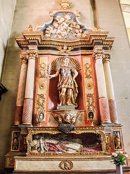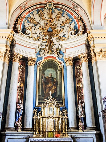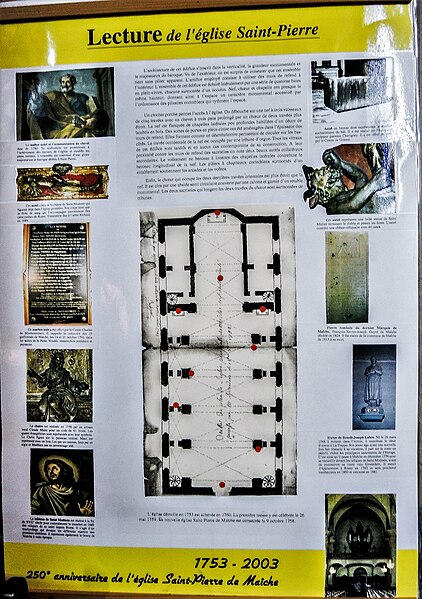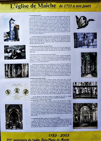 L'église Saint-Pierre de Maîche est située à Maîche, dans le département du Doubs. L'édifice actuel a été construit entre 1753 et 1760 pour remplacer l'ancienne église endommagée durant la guerre de Dix Ans ; son dôme ne fut achevé qu'en 1767. Après avoir été inscrite, l'église a été classée au titre des monuments historiques par arrêté du 25 janvier 1990. Elle appartient à la paroisse de Maîche, dite paroisse du Plateau de Maîche, et dépend du diocèse de Besançon. D'architecture d'ordre corinthien à influence baroque, la grande nef mesure 42 mètres de long, 30 mètres de large et 16 mètres de haut. Le mobilier comporte deux autels latéraux dédiés à Saint-Michel, patron de la paroisse, et à Saint-Modeste, dont le corps repose dans une châsse, ainsi qu'une plaque commémorative en mémoire des 19 personnes guillotinées lors de l'épisode de la Petite Vendée en 1793. Le peintre Jean Le Moal a rénové les décorations de l'église en 1950. Plusieurs éléments sont protégés au titre des monuments historiques : un orgue de tribune construit en 1779 par Jacques Besançon, transformé en 1872 par Nicolas Verschneider et restauré en 1977 par Jean Dunand de Villeurbanne, dont le buffet est classé depuis le 9 avril 1985 ; et les fonts baptismaux du XVIIIe siècle, sculptés en pierre de taille avec leur retable en bois, inscrits depuis le 30 août 1984.
