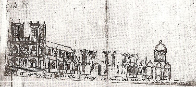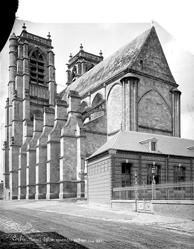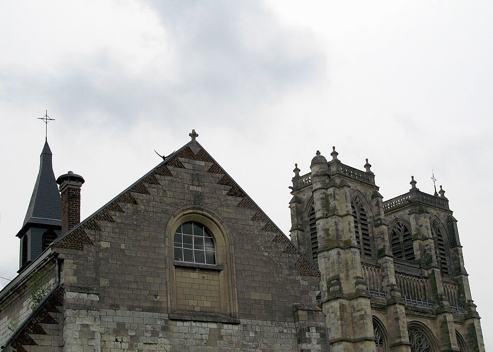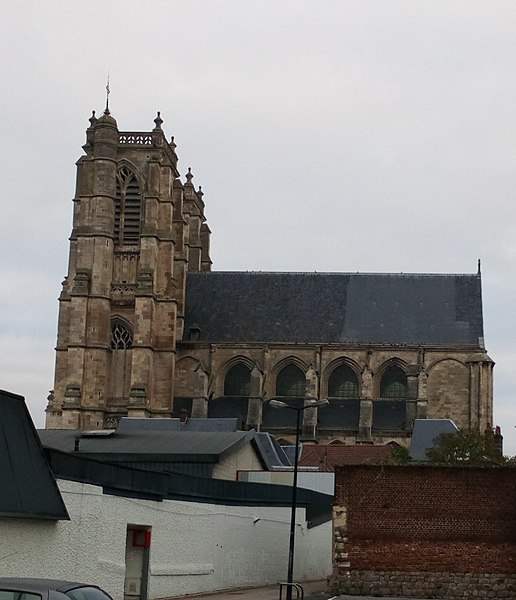 L'abbatiale Saint-Pierre de Corbie, située au cœur de la ville de Corbie dans la Somme, est un édifice religieux de style gothique protégé au titre des monuments historiques par arrêté du 7 juin 1919. Église principale de l'ancienne abbaye royale fondée au VIIe siècle par la reine Bathilde, elle ne donne aujourd'hui qu'une image partielle de sa splendeur passée. L'édifice primitif, dédié aux apôtres Pierre et Paul, fut successivement détruit par des incendies et reconstruit à plusieurs reprises au cours du haut Moyen Âge et du bas Moyen Âge, avec notamment une chapelle de Soyécourt financée par la famille du même nom. La reconstruction commencée au début du XVIe siècle sous l'abbatiat de Pierre d'Ostrel vit l'achèvement du chœur, du transept et de la tour-lanterne avec sa flèche, mais les travaux furent interrompus puis repris aux XVIIe et XVIIIe siècles, la nef étant finalement élevée dans un style gothique flamboyant. À son apogée l'abbatiale comportait un chœur, un transept surmonté d'une tour-lanterne élevée et une façade occidentale flanquée de deux tours jumelles ; ses voûtes atteignaient alors une grande hauteur et la longueur totale excédait cent mètres. L'intérieur fut richement meublé : stalles et trône abbatial de Charles Cressent, grandes orgues de Charles Dallery et un baldaquin en ferronnerie de Jean Veyren figurent parmi les éléments cités.