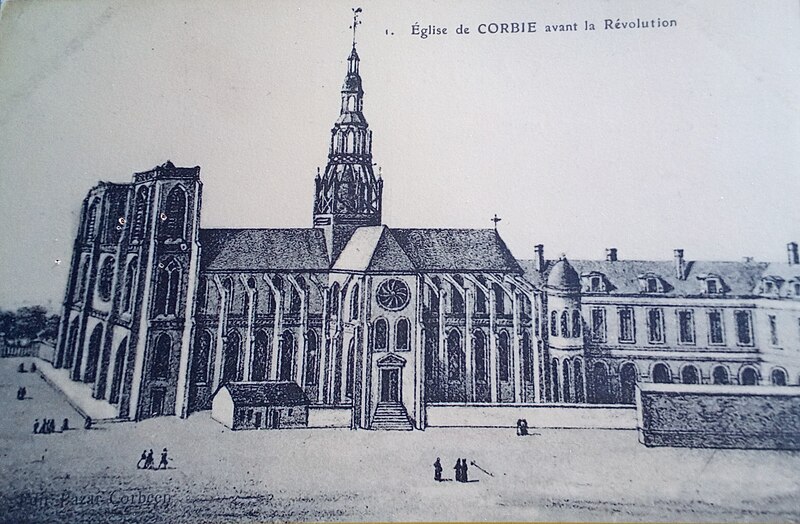 La Révolution française mit fin aux institutions monastiques et l'abbaye de Corbie fut supprimée ; l'abbatiale fut alors affectée au culte paroissial, fermée pendant la Terreur puis progressivement laissée à l'abandon et victime de ventes de matériaux, de démolitions partielles et d'effondrements. Divers projets de restauration ou de reconstruction furent étudiés par plusieurs architectes, mais le coût entraîna des refus et des compromis ; en 1816 la nef fut fermée par un mur et le transept et le chœur furent en grande partie démolis, donnant à l'église la physionomie réduite que l'on connaît. La tour sud conserve plusieurs cloches, dont des exemplaires refondus et des ensembles réalisés en 1925 par G. et L. Bollée exposés aux Arts décoratifs de Paris.