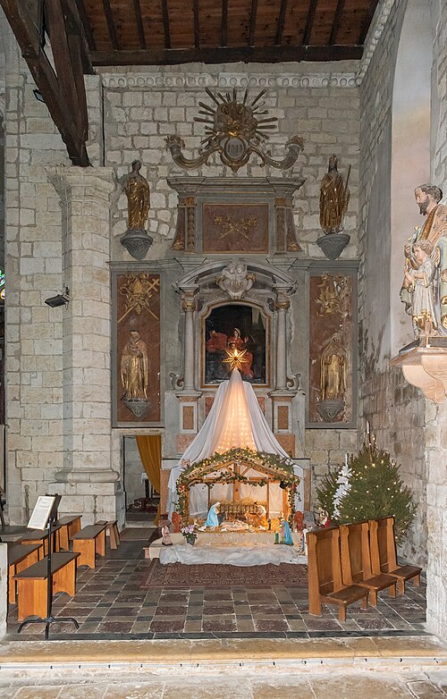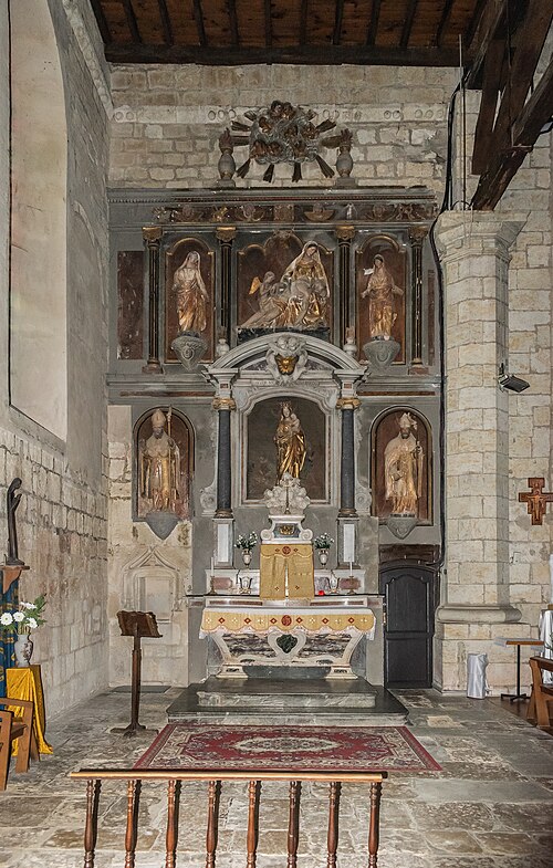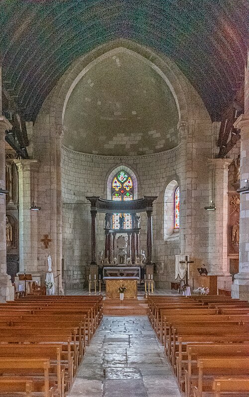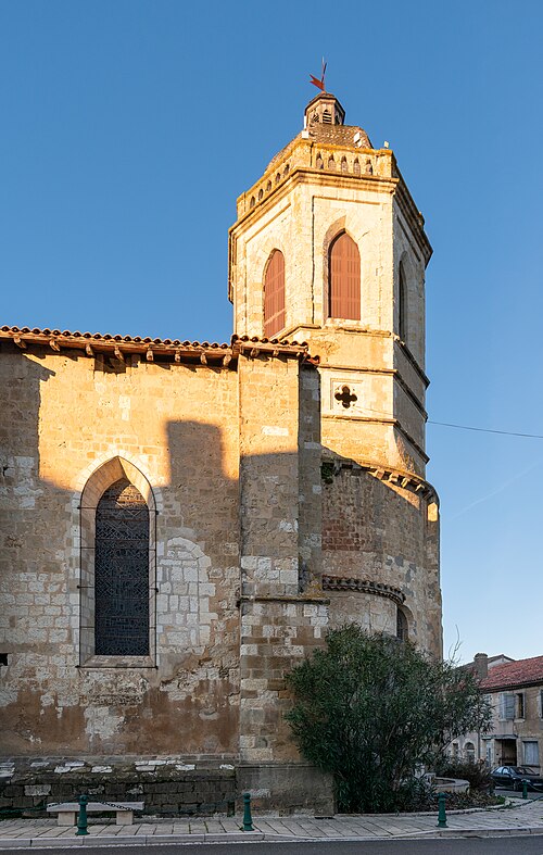 Une première église existe au haut Moyen Âge et disparaît en grande partie vers 1160. La nouvelle construction commence vers 1190, mais l'édifice est ravagé en 1569 lors des guerres de Religion. La restauration débute en 1617 et aboutit à une consécration en 1623. Au début du XIXe siècle, d'importants travaux de charpente et de couverture sont décidés et réceptionnés en 1822. À partir de 1850, un nouveau clocher est élevé au‑dessus de l'abside par le maître‑charpentier Bénetrix et le charpentier Merlé, d'après les plans de Lodoyer. En 1936, le peintre‑verrier Raphaël Lardeur réalise une série de vitraux pour la nef.