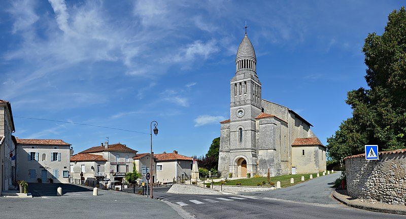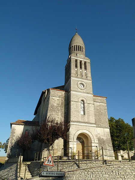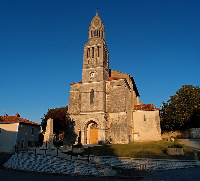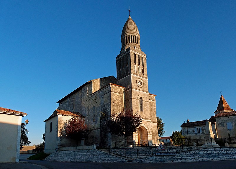 L'église Saint-Pierre-aux-Liens d'Allemans (Dordogne) est un édifice roman dont la nef unique, longue de 28 m, comprend trois travées. Les deux premières travées sont couvertes par des coupoles sur pendentifs, portées par des arcs brisés à double rouleau, tandis que la dernière travée est voûtée en berceau légèrement ogival. Le chœur, long de 8 m, est voûté en berceau brisé et se termine par un chevet plat éclairé de trois fenêtres en plein cintre. Construite à la fin du XIIe siècle ou au début du XIIIe siècle, l'église a été pensée comme un bâtiment fortifié, doté de chambres de défense et de hourds ; elle a ensuite été refortifiée, peut‑être au XVe siècle, avec l'ajout de contreforts massifs aux angles du chevet. Certains contreforts d'angle soutenant le mur plat du chevet semblent dater du XVe ou XVIe siècle. La façade a été remaniée au XVIIe siècle, puis deux chapelles latérales, assurant le rôle de bras de transept, ont été ajoutées au XIXe siècle ; selon le chanoine Brugière, l'une de ces chapelles a été fondée en 1852 par M. Ducluzeau de Larivière, l'autre par les dons des fidèles. Le clocher‑porche de la façade, de style byzantin et inspiré par la partie supérieure du clocher de la cathédrale Saint‑Front de Périgueux, a été édifié en 1905. L'édifice roman fait l'objet d'une inscription partielle au titre des monuments historiques par arrêté du 9 juin 1926.