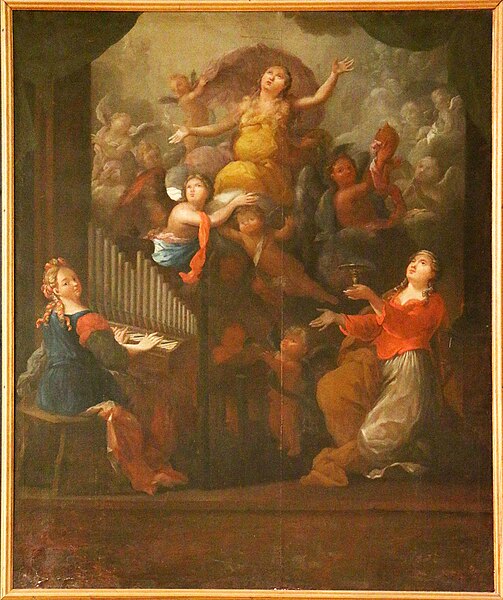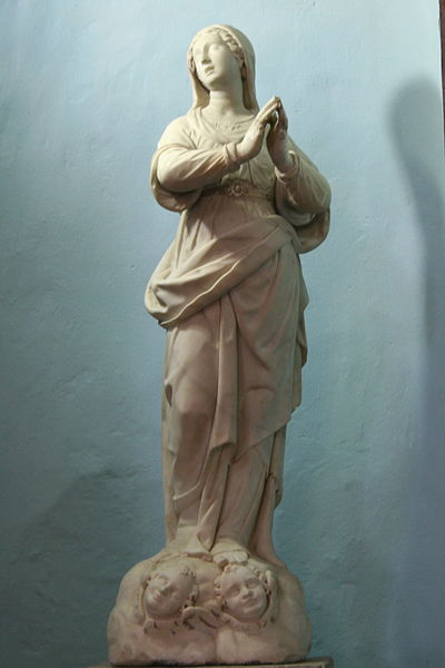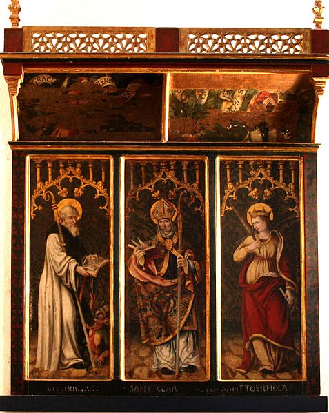 À l'extrémité ouest de la nef romane, la chapelle Sainte-Philomène contient un bassin circulaire reconstitué par François Jouglas dont la margelle associe deux calcaires différents, ce qui rend douteuse son interprétation comme vestige de baptistère. Sur le mur ouest est exposé un polyptyque de Ludovico Brea, classé monument historique et exécuté entre 1520 et 1523 pour l'ancienne église de Saint-Jean-des-Cottes ; cet ensemble de deux rangées de cinq panneaux représente divers saints et la Vierge à l'Enfant au centre, ce dernier tenant un chardonneret.