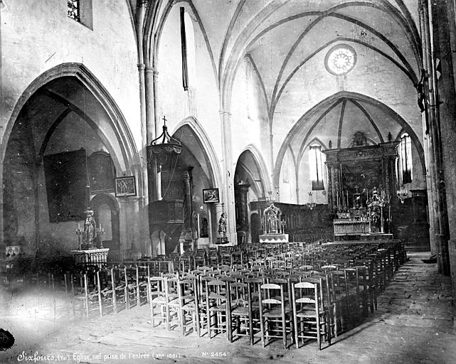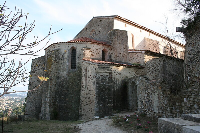 La partie gothique, construite perpendiculairement à l'édifice roman, développe une nef unique de 9 m de large en quatre travées voûtées sur croisées d'ogives, flanquée de chapelles latérales et achevée par un chevet pentagonal renforcé par des contreforts d'angle. Cette église gothique mesure 37,5 m de long sur 21 m de large et atteint 14,50 m de hauteur ; elle a été réalisée en schistes locaux, tandis que les piliers sont en calcaire rose du cap Couronne. La nef, orientée nord-sud, se termine par une abside semi-octogonale abritant le maître-autel en marbre blanc de la fin du XIXe siècle ; derrière lui se dresse un retable en bois sculpté, polychrome et doré, réalisé en 1628 par Laurent Lieutaud et Bouchoni et encadrant un tableau de Guillaume-Ernest Grève de 1628 représentant Jésus remettant les clefs à saint Pierre. Sous l'autel, deux caveaux contiennent les restes des prêtres et chanoines, et des stalles en noyer datées de 1656, classées monument historique, bordent le chœur.