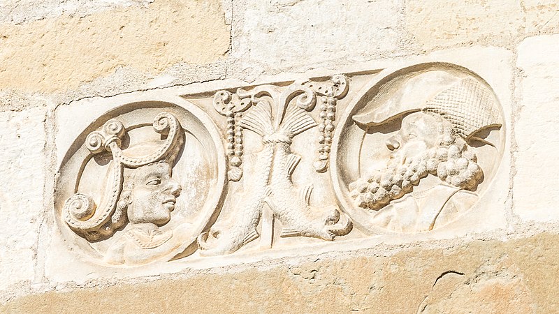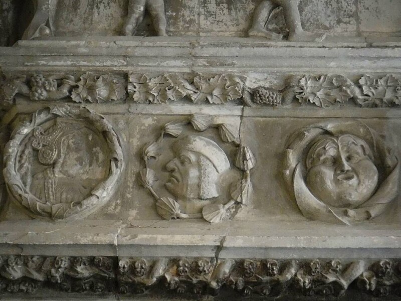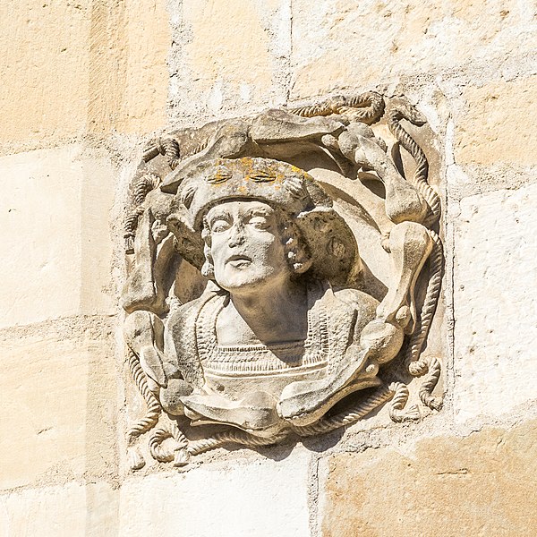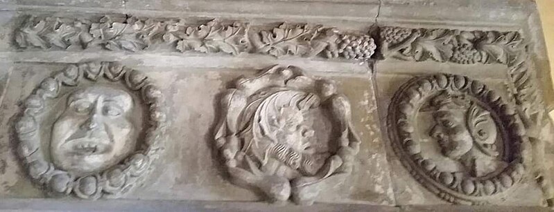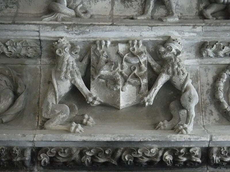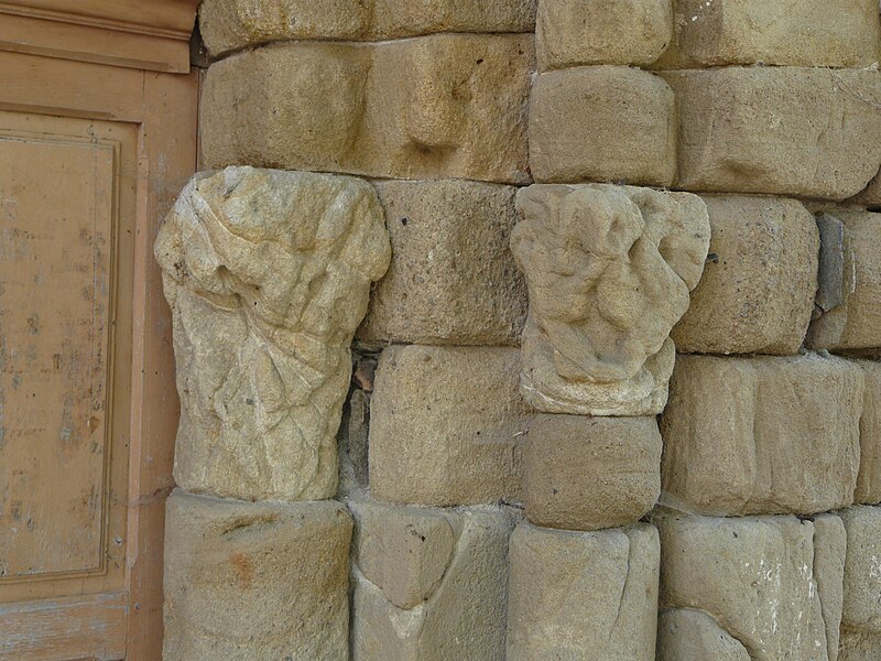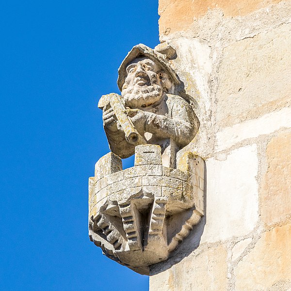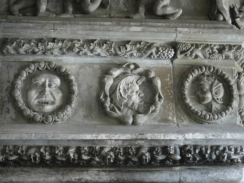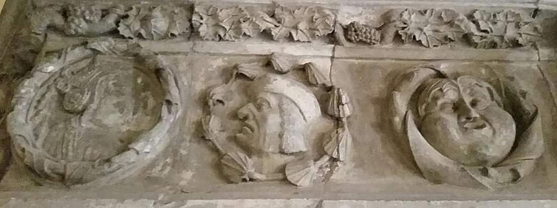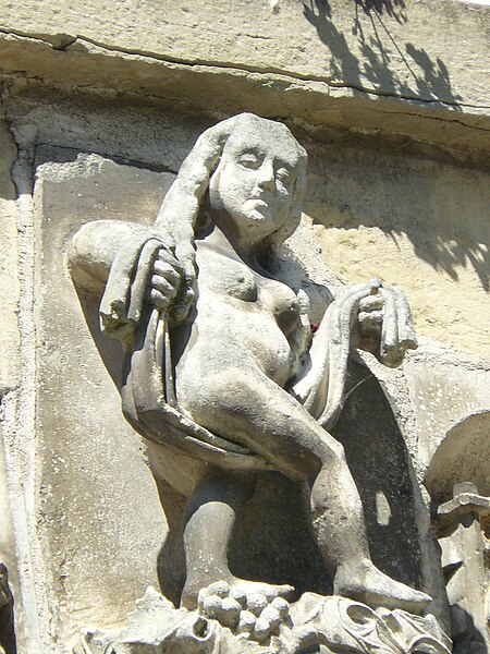 En l'absence de sources contemporaines, l'origine et le sens exacts des sculptures restent ouverts à l'interprétation, d'autant que leur disposition a pu être modifiée lors de leur réemploi. Les décors se déploient sur deux niveaux : entre le premier et le deuxième étage, on observe de grandes colonnes d'angle, des bustes et médaillons, des niches et la célèbre « nymphe bellocoise » accompagnée d'angelots ; entre le deuxième et le troisième étage figurent des statues d'angle, notamment des militaires comme un arquebusier et un veilleur installé dans une échauguette, ainsi qu'un grand hallebardier barbu. Une large frise du deuxième étage représente diverses scènes de combat entre un homme et un fauve, entourée de personnages — composition qui peut évoquer le combat d'Héraclès contre le lion de Némée. De nombreux éléments sculptés datent du XVIe siècle, soulignant le caractère composite et historique de la façade.