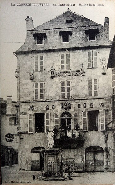 Maison du XVIIIe siècle, élevée sur un rez-de-chaussée, trois étages et un comble, dressée en pierre de taille, devant la façade occidentale de l'abbaye Saint-Pierre, place de la Bridolle à Beaulieu-sur-Dordogne. Sur la façade, un propriétaire a, à la fin du XIXe siècle, incrusté une suite de fragments sculptés issus de maisons détruites de Beaulieu et des environs ; plusieurs de ces éléments remontent aux XVe et XVIe siècles. L'intérieur conserve une cheminée monumentale de la Renaissance dont le manteau, sculpté au XVIe siècle, présente dans la partie supérieure la tentation d'Adam et Ève et probablement leur expulsion du Paradis, tandis que la partie inférieure comporte des têtes en médaillons circulaires. La façade ornée de statues de la Renaissance et la cheminée sont classées Monument historique depuis 1928. Pendant quelques années la demeure a accueilli un musée privé présentant des personnages habillés d'époque dans un décor reconstitué ; elle est aujourd'hui une propriété privée.