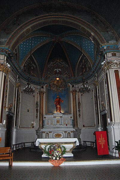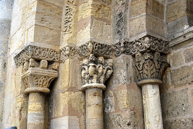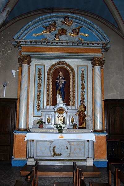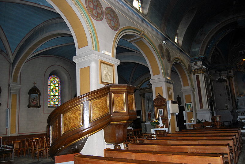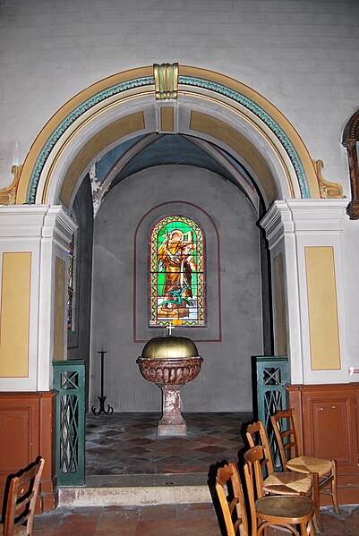 De la décoration romane il subsiste très peu : deux chapiteaux de l'abside et deux chapiteaux de l'ébrasement sud du portail. L'un des chapiteaux de l'ébrasure sud montre quatre têtes, l'autre représente une bête bicorporée qui pèse sur deux crânes, motifs attestant la représentation du péché dans l'art roman. Sur l'abside, un chapiteau au faîte de la grande colonne sud comporte six têtes en saillie ; un voile commun recouvre ces têtes coiffées en bol ainsi que des fruits ovoïdes et pédonculés, association fruit‑péché fréquente dans la sculpture romane. Les chapiteaux de l'ébrasement sont cependant datés du XIXe siècle. Les vitraux de l'édifice sont l'œuvre de Gustave Pierre Dagrant. L'intérieur conserve parmi ses éléments notables la chapelle nord, plusieurs autels (principal, nord et sud), la chaire à prêcher et l'orgue.