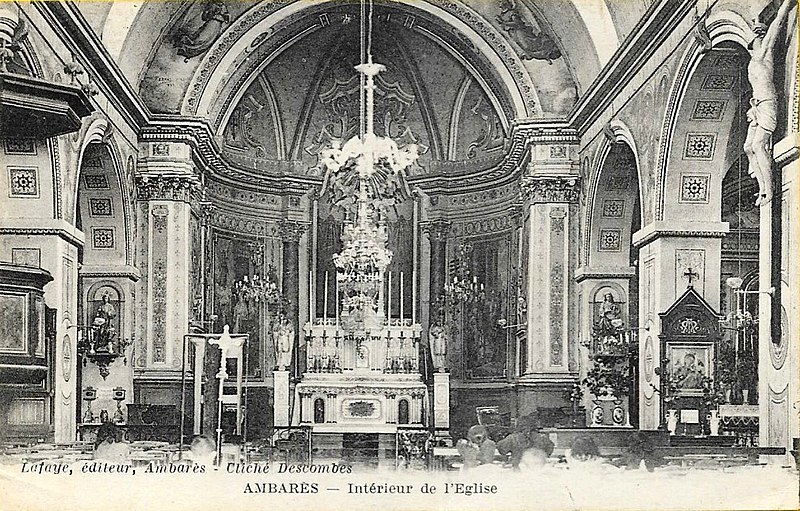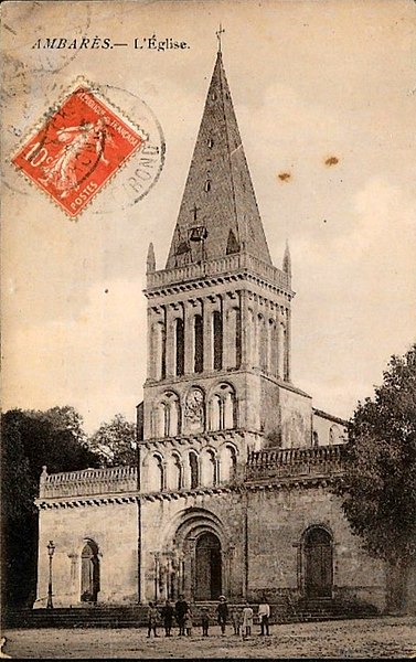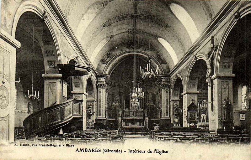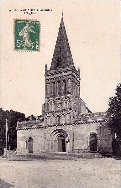 L'église Saint-Pierre se situe place du Maréchal-Leclerc, au centre du bourg d'Ambarès-et-Lagrave (Gironde). L'édifice présente un vaisseau principal flanqué de deux bas-côtés, une travée droite précédant une abside en hémicycle, un clocher-tour quadrangulaire coiffé d'une flèche à l'ouest et une chapelle abritant les fonts baptismaux au nord‑ouest. Des traces d'une église du XIe siècle subsistent, notamment un petit appareil cubique visible dans les murs de la première travée de la nef, en arrière du clocher. Au XIIe siècle, la façade et le chevet furent reconstruits et un portail ouest à quatre voussures, avec cinq arcs en plein cintre retombant sur des colonnes jumelées, fut ouvert ; cet ensemble relève d'une ordonnance romane d'inspiration saintongeaise. Lors de la guerre de Cent Ans, au XIVe siècle, le chevet fut renforcé et partiellement fortifié. Les travaux de 1754 modifièrent profondément l'édifice : construction des bas‑côtés, création de la chapelle baptismale et mise en place d'un décor intérieur. L'ensemble fut largement remanié en 1837–1838 par l'architecte Bordes, qui transforma la façade occidentale, éleva le clocher‑tour et fit voûter la nef ; A. Dorous est cité comme entrepreneur et des travaux de restauration de l'intérieur et de la sacristie sont mentionnés en 1861. Les fenêtres percées dans les bas‑côtés en 1864 reçurent des vitraux conçus par Gustave Pierre Dagrant, peintre‑vitrier à Bordeaux. Le perron d'accès fut réalisé dans les années 1860 : certaines sources l'attribuent à l'architecte Faulat (ou Fautard) et à l'entrepreneur Monain. Le décor peint fut complété par le peintre Terral en 1897. La charpente, autrefois apparente et portant la date 1470, a été refaite entre 1890 et 1899 par L. Drouyn, période durant laquelle la nef et les bas‑côtés furent voûtés. Des éléments portent des datations ou inscriptions diverses : choeur du XIIIe siècle, chapelle du XVIe siècle et bas‑côtés attribués au XVIIe siècle ; l'intérieur a été remanié au XVIIIe siècle. Certains éléments anciens, comme une partie de la façade, le chevet romans et deux petites fenêtres de la nef, semblent appartenir à la deuxième église à nef unique du XIIe siècle, tandis que quelques arcatures de l'élévation ouest et le chevet paraissent n'avoir que peu été modifiés. L'édifice a été inscrit au titre des monuments historiques le 16 avril 2002.