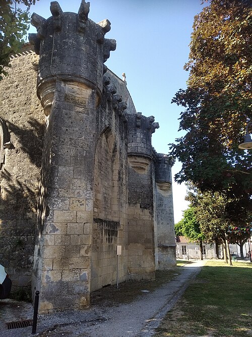 L'église Saint-Pierre, située à Angoulins (Charente-Maritime, Nouvelle-Aquitaine), est un ancien prieuré devenu église fortifiée. L'édifice se compose de deux parties distinctes : à l'ouest se trouve la partie la plus ancienne avec la façade et l'entrée primitive qui ouvrait sur une nef unique, dont ne subsistent qu'une travée et demie de voûtes, la deuxième travée ayant été coupée pour former le mur pignon de l'église actuelle. Il semble que la nef primitive devait à l'origine se poursuivre jusqu'au chevet ; après cette première phase de construction, une seconde nef a été ajoutée au nord. À la fin du XIXe siècle, l'intérieur a été réaménagé et l'église divisée en trois nefs par des piliers en pierre supportant des voûtes en brique. Les croisées de la façade sud ont été refaites dans le style du XIVe siècle. L'édifice est classé au titre des monuments historiques par arrêté de 1908. Pour compléter la documentation, on peut consulter les notices et portails spécialisés tels que Mérimée, Clochers de France et l'Observatoire du patrimoine religieux, ainsi que les portails consacrés à l'architecture chrétienne, à la Charente-Maritime et aux monuments historiques ; voir aussi la liste des monuments historiques et les articles sur les églises de la Charente-Maritime.
