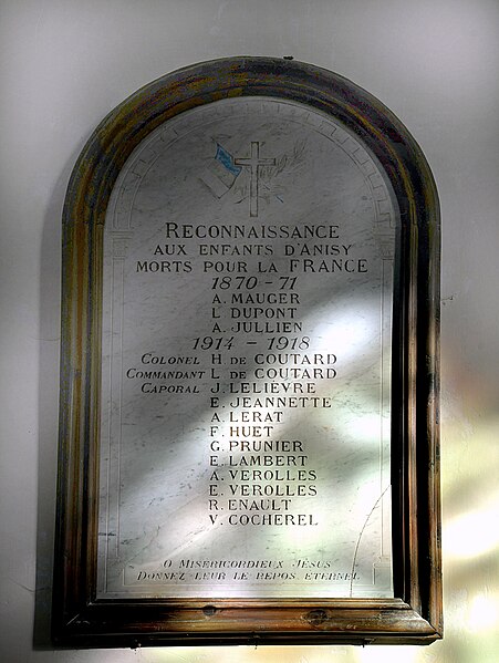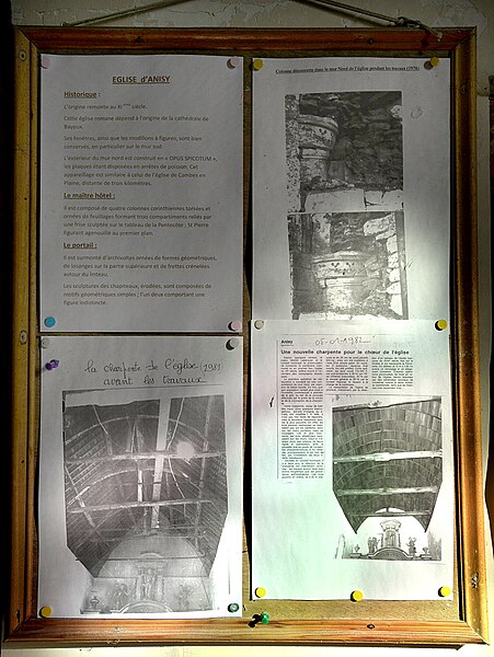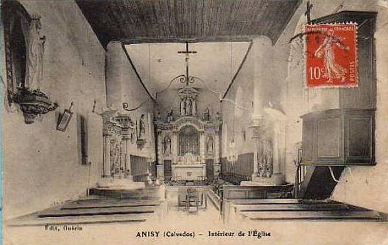 L'église dépendait d'un des quatre anciens fiefs d'Anisy ; le seigneur de ce fief exerçait le droit de présenter le curé une fois sur quatre, les trois autres fiefs ayant la même prérogative. Le fief resta dans la famille d'Anisy jusqu'en 1468, puis passa entre plusieurs familles avant d'être vendu en 1669, avec les trois autres fiefs, à Odet de Clinchamps. Le nouveau seigneur fut, en principe, le seul à nommer au bénéfice de la cure ; son frère Louis fut nommé trésorier de l'église par l'assemblée paroissiale. Entre la fin du XVIIe siècle et le début du XVIIIe siècle, l'église était desservie, en plus du curé, par un obitier qui était aussi maître d'école. Pierre-Louis de Clinchamps fut le dernier seigneur et patron d'Anisy. Pendant la Révolution, le curé François-Louis Delamare refusa de prêter serment à la Constitution et fut remplacé en 1791 par l'abbé Lecouturier, qui prêta serment. Des travaux de restauration furent entrepris à plusieurs reprises au début du XIXe siècle, notamment sur la toiture et le plafond lambrissé ; la charpente a été refaite en 1982.
