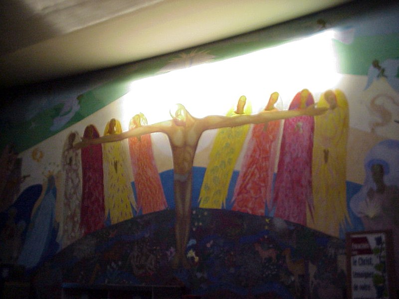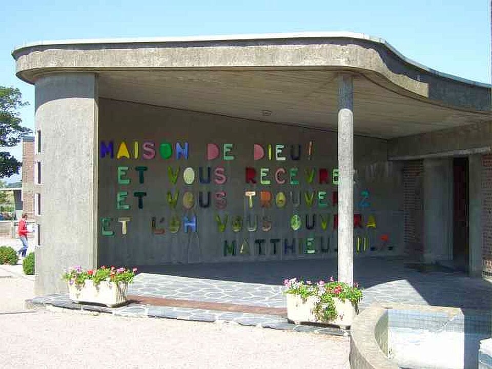 L'église Saint-Pierre d'Audinghen (Pas-de-Calais) remplace l'ancienne église détruite par les bombardements alliés de 1943. Après la guerre, la reconstruction initialement confiée à l'architecte Roger Porte fut reprise par Alexandre Colladant en 1950. Son avant-projet, accepté en 1954, proposait une église radicalement moderne exploitant les possibilités du béton armé et mettant en relation architecture et arts plastiques. Les travaux se déroulent entre 1957 et 1960 ; le presbytère et l'église sont mis en chantier en 1959, et l'édifice est inauguré en 1960. L'édifice se distingue par son clocher en béton en forme de lyre et par un plan inédit. Le toit de la nef était couvert d'un carrelage bleu et blanc qui a disparu. La totalité des pavés de verre du baptistère a été remplacée par de grandes glaces en verre armé. L'intérieur reçoit la lumière de nombreux petits vitraux multicolores et surtout de deux grands vitraux représentant la Vierge et le martyre de saint Sébastien. Une fresque monumentale de 200 m², réalisée par Geneviève d'Andréis, représente le Christ embrassant le monde. Quelques statues de l'ancienne église ont été réinstallées dans le nouvel édifice. L'église Saint-Pierre fait l'objet d'une inscription au titre des monuments historiques depuis le 2 mai 2006.
