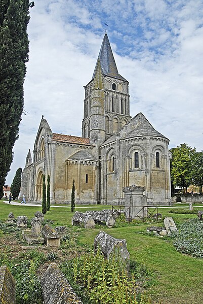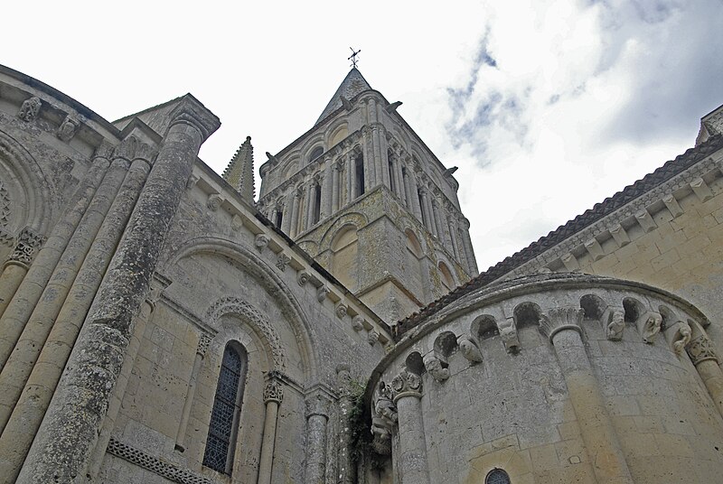 De plan en croix latine, l'église présente une triple nef voûtée en berceau brisé, cinq travées rythmées par de fortes colonnes et des arcs doubleaux, des bas‑côtés, un transept saillant flanqué d'absidioles et un chœur terminé par une abside en hémicycle ; la croisée est couverte par une coupole hémisphérique nervée qui porte le clocher rectangulaire. L'appareil de calcaire de très bonne qualité a permis la conservation d'un décor sculpté d'une grande lisibilité. Certaines influences orientales se lisent dans des motifs du portail et dans un chapiteau figurant des éléphants ; des moulages de ces décors sont exposés à la Cité de l'Architecture et du Patrimoine à Paris.
