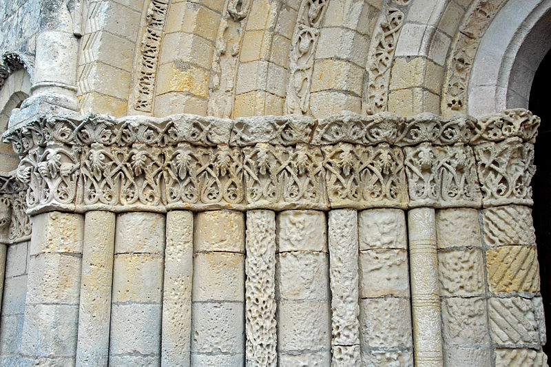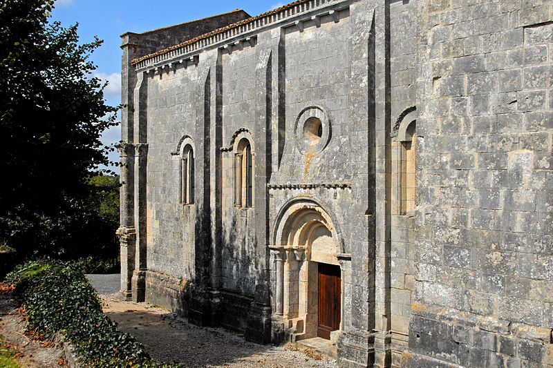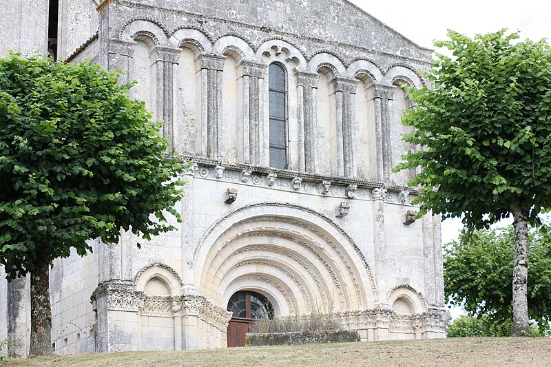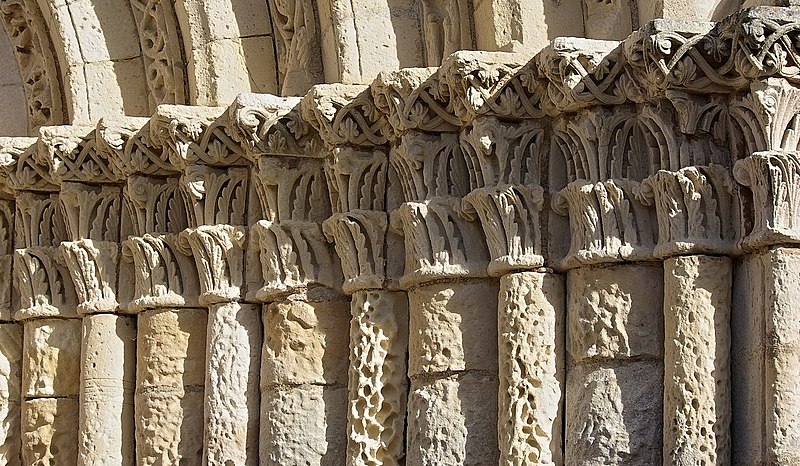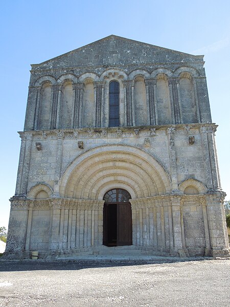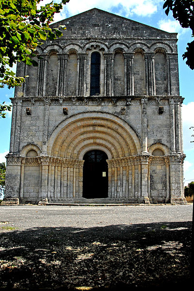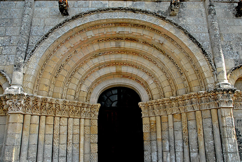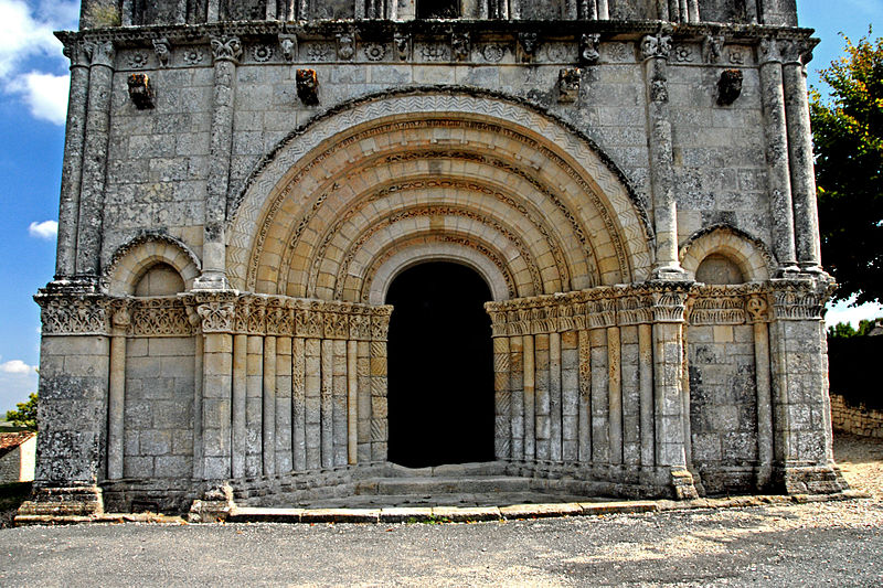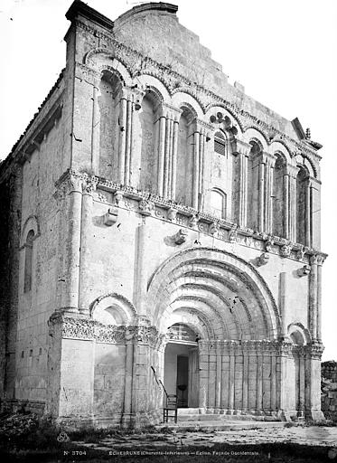 Édification de l'église avec sa porte principale encadrée par deux arcs latéraux.