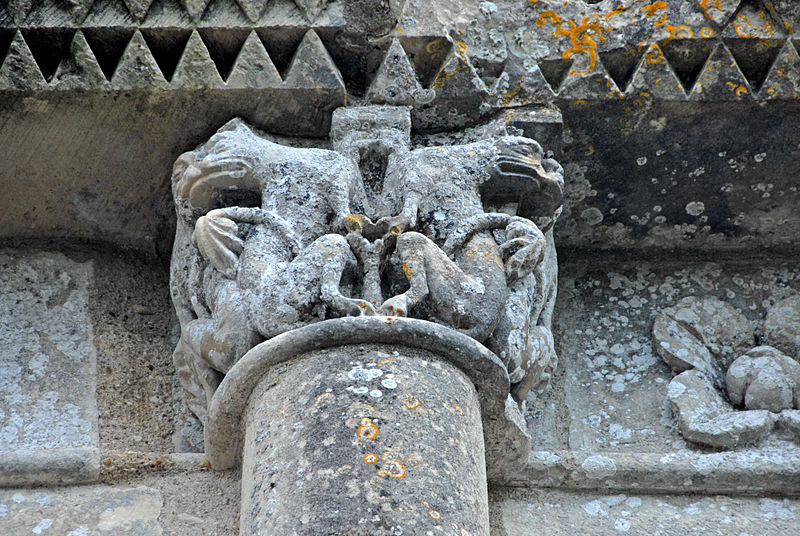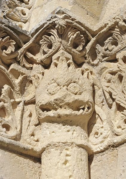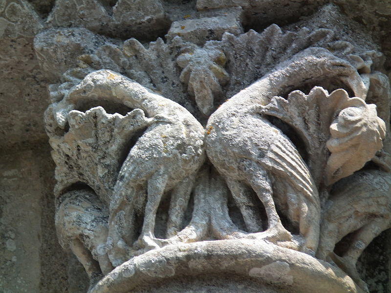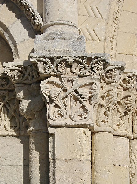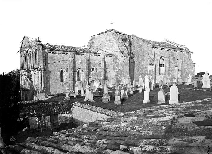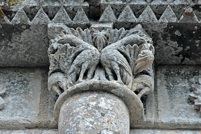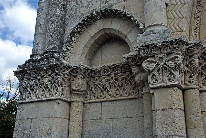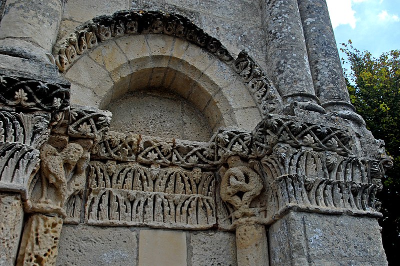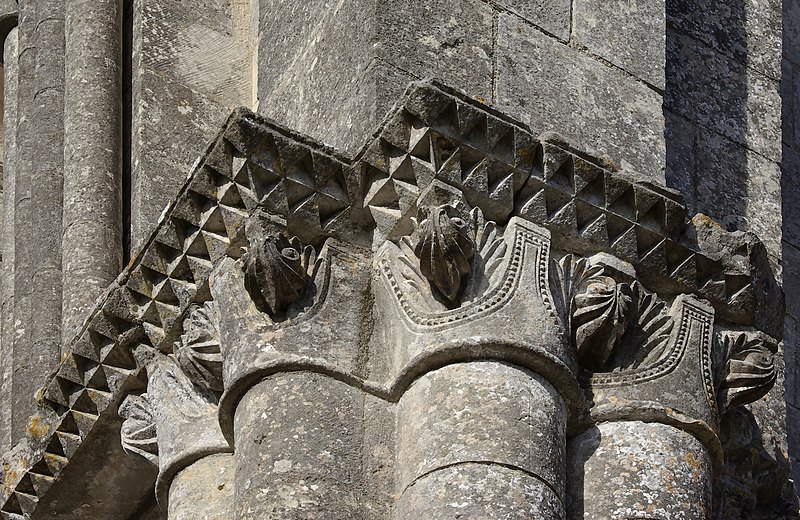 Édification de l'église avec sa porte principale encadrée par deux arcs latéraux.