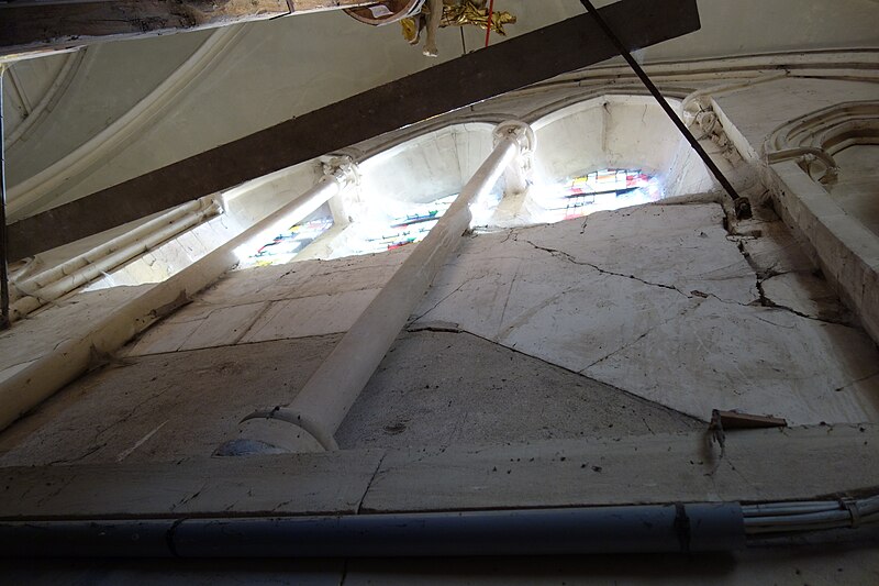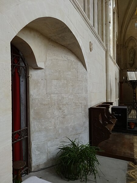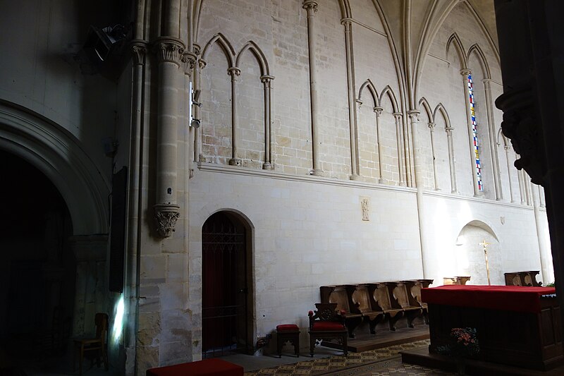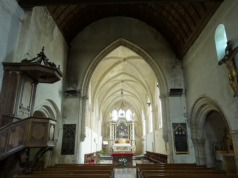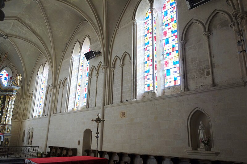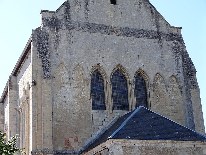 Le chœur, plus étroit, date du XIIIe siècle ; il comporte trois travées, des contreforts et un seul rang d'arcatures en arc brisé dont les colonnettes ont disparu. Il est éclairé par de hautes lancettes jumelées et, au chevet plat, par un triplet partiellement masqué par une petite sacristie rectangulaire aujourd'hui inutilisée ; ce triplet fut remis en état par Victor Delaunay. Deux pierres de réemploi et une plaque commémorative pour un curé mort en 1786 sont intégrées au mur sud. À l'intérieur, le chœur est couvert de trois croisées d'ogives dont les arcs brisés retombent sur de fines colonnettes aux chapiteaux à un seul rang de crochets, surmontés de tailloirs circulaires, ce qui confère à cette partie une grande luminosité et une apparente légèreté.