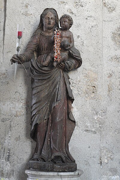 L'église Saint-Pierre d'Igny est une paroisse catholique dédiée à l'apôtre Pierre, située 4 rue de l'Église dans la commune d'Igny, en Essonne. Implantée au centre du bourg, elle se trouve à proximité de l'hôtel de ville, sur la rive droite de la Bièvre et près de la route départementale 444 qui la sépare du massif forestier des Brûlis. La base du clocher date du début du XIIIe siècle ; elle fut alors élevée comme tour de guet pour la ferme fortifiée d'Amblainvilliers, et le lieu de culte fut édifié peu après, à la fin du règne de Philippe Auguste, puis dédié à saint Pierre. L'édifice fut endommagé lors des ravages anglais pendant la guerre de Cent Ans et restauré au XVe siècle par la famille Du Puys. Au XVIIIe siècle, la crypte abritant les sépultures seigneuriales fut comblée et la façade restaurée. L'église a été inscrite aux monuments historiques le 17 février 1950 ; une restauration suivie de l'installation d'un nouvel autel eut lieu en 1967. Seule la base du clocher subsiste du XIIIe siècle : l'ensemble du bâtiment, après sa dévastation, fut reconstruit au XVe siècle dans un vocabulaire roman. L'édifice présente un plan simple avec une nef voûtée en berceau, deux collatéraux voûtés d'ogives quadripartites et un chevet plat. Le clocher, implanté sur la façade nord, est pourvu de contreforts et d'un toit à deux pans ; il abrite aujourd'hui un escalier de visite et porte une horloge au sommet. En vis-à-vis du clocher, une chapelle dédiée au Saint-Sacrement a été ajoutée sur la façade sud. L'église conserve une sculpture en bois du XVIe siècle représentant la Vierge à l'Enfant, ainsi que des clés de voûte et des frises sur le clocher ornées des armes de la famille Du Puys.