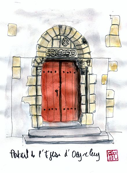 Église Saint-Pierre d'Oeyreluy, lieu de culte catholique d'origine romane et ancien prieuré dépendant de l'abbaye de Divielle, est située rue du Bourg au centre du village d'Oeyreluy, dans les Landes. Son portail roman, ouvert sur la face nord, est inscrit au titre des monuments historiques depuis le 2 décembre 1926. L'édifice, initialement bâti près du Luy avec des pierres d'une villa antique, a été démonté puis remonté pierre par pierre au centre du bourg à cause des inondations et de l'éloignement du site primitif. La paroisse est rattachée à Saint-Joseph-des-Barthes et au diocèse d'Aire et Dax. De plan roman, l'église conserve une abside semi-circulaire, une nef prolongée par le chœur, deux chapelles latérales ouvertes en avant du chœur et un clocher en impériale, sur la face ouest, coiffé d'une flèche. La porte nord est encadrée de colonnettes et de chapiteaux qui supportent un linteau orné d'entrelacs ; le tympan porte le chrisme. Si la tradition locale fait remonter le portail à une époque très ancienne, les observations le situent probablement à partir du XIIe siècle ; ses entourages sont richement sculptés, avec frises de cercles sécants, motifs végétaux et scènes animalières. L'édifice a connu plusieurs interventions : la chapelle sud a été ajoutée en 1843, la chapelle nord en 1902, des incohérences ont été relevées lors du remontage du portail et les fenêtres du chevet ont été rétablies dans les années 1970. Un décret de 1812 transforma temporairement l'église en chapelle rattachée à Tercis-les-Bains; des revendications locales aboutirent au rétablissement d'un curé et à des travaux au XIXe siècle, la cloche ayant été refondue et bénite en 1858. Le mobilier et les décors gardent la marque de l'histoire monastique : on y compte notamment deux cloches en bronze nommées Marie Françoise et Marie Valentine, ornées de gravures et frises diverses, toutes deux refondues en 1953 par le fondeur Marcel Fourcade. Les six vitraux, réalisés par le peintre-verrier toulousain Louis Saint-Blancat au début du XXe siècle, représentent notamment Abdon, Vincent de Paul, Notre-Dame de Lourdes et saint Pierre, figurés en pied sous des arcades polylobées avec bordures décoratives ; ceux de la nef et de la chapelle nord datent de 1900, ceux de la chapelle sud de 1902, et plusieurs ont été offerts par des paroissiens. Parmi les peintures, un Portrait du père Joseph (XVIIe–XVIIIe siècle) représente François Leclerc du Tremblay en habit de capucin ; une grande toile de la première moitié du XVIIe siècle, de sujet liturgique, fait l'objet d'identifications divergentes (Saint Norbert recevant la règle ou Saint Albert le Grand) et pourrait être liée à l'abbaye de Divielle. Dans la chapelle nord se trouve une Vierge à l'Enfant accompagnée d'un évêque, signée Saïe en 1762, dont les inventaires signalent des dimensions et un état de conservation variables. Deux statues en plâtre figurent le Sacré-Cœur, debout sur le globe, et Jeanne d'Arc en bergère ; ces modèles d'atelier parisien datent de la fin du XIXe ou du début du XXe siècle. L'autel en marbre blanc, daté du premier quart du XIXe siècle et décoré notamment d'une croix grecque et d'un pélican mystique, a été remanié et partiellement morcelé vers 1970 ; il a été replacé et complété à différentes reprises et est accompagné d'un tabernacle et d'un autel "face au peuple" composé d'éléments de chaire du XVIIIe siècle. La sacristie conserve un calice en argent doré de la fin du XVIIe siècle attribué à un orfèvre bordelais probablement de la famille Sermesan, ainsi qu'un calice et une patène néogothiques du XIXe siècle et un ostensoir art déco de la maison Favier frères. Les fonts baptismaux en calcaire mouluré, datés de la limite entre le XVIIe et le XVIIIe siècle, ont été retrouvés en 1992 et déplacés dans la chapelle nord ; ils sont partiellement endommagés et complétés par des réparations en ciment. Un bénitier en marbre du XIXe siècle et treize bancs de fidèles en bois du XIXe siècle complètent le mobilier. Propriété communale, l'église et son portail sont documentés dans les bases Mérimée et Palissy et illustrés notamment par des photographies anciennes de Jean-Auguste Brutails.