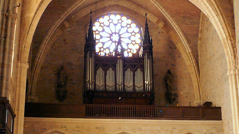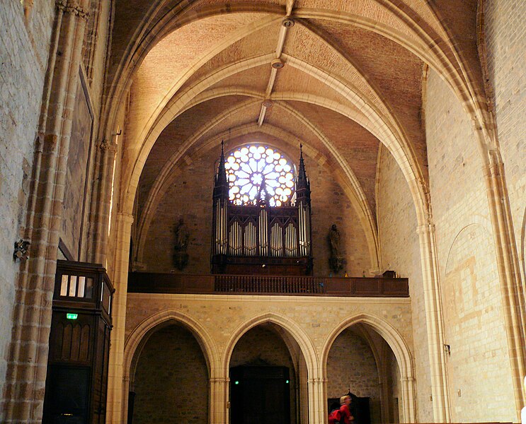 L'église Saint-Pierre d'Orthez, dans les Pyrénées-Atlantiques, dépend de la paroisse Saint-Pierre de Moncade - Orthez et du diocèse de Bayonne; elle a été inscrite aux monuments historiques le 31 mai 1939 puis classée le 23 mars 2012. Le chœur, de proportions modestes, se termine par un chevet semi-hexagonal et présente des éléments — profils de nervures, chapiteaux, bases de colonnes, clés de voûte et réseaux de fenêtres — caractéristiques de la fin du XIIIe et du début du XIVe siècle, signe d'une construction menée en plusieurs campagnes. Certains historiens attribuent la réalisation du chœur à la fin du XIIIe siècle sous Gaston VII de Béarn; selon Jacques Gardelles, les colonnettes rapprochent cependant cet ensemble d'ouvrages datés du début du XIVe siècle. Les bas-côtés se terminent au nord et au sud par des chapelles pouvant correspondre aux bras d'un transept primitif, et des traces d'ouvertures et de raccords montrent l'adaptation de parties anciennes et remaniées. Après l'édification du chœur, les arcs du côté de son entrée restèrent inachevés et la nef fut reprise avec des proportions plus importantes. La nef, de conception languedocienne, contraste avec le chœur d'inspiration septentrionale et présente une histoire constructive complexe : certaines parties paraissent antérieures au XIVe siècle tandis que d'autres résultent d'interventions ultérieures. Les colonnes d'appui ont été insérées dans des maçonneries plus anciennes; leurs bases, qui ne semblent pas postérieures à 1400, pourraient remonter à l'époque des colonnettes du chevet. Le mur nord de la première travée est oblique et porte des ouvertures aveugles rappelant une chapelle contiguë, ce qui suggère un raccord à des murs déjà existants; les parties hautes de ce mur ont dû être refaites lors de la réalisation des voûtes actuelles. La nef était initialement couverte de quatre voûtes d'ogives quadripartites reliées par une longue lierne centrale; les clés de voûte sculptées portent des thèmes qu'aux yeux de Jacques Gardelles on ne retrouve qu'à partir du début du XVe siècle. La clé figurant l'ancien pont à trois travées indique que la voûte a été réalisée avant l'ajout d'une quatrième arche au pont au XVIe siècle. Parmi les particularités, l'édifice n'a pas de collatéraux et sa voûte atteint 18 mètres à la clef, la hauteur la plus élevée du Béarn. La façade nord ne comporte que deux lucarnes étroites et hautes et montre des traces d'anciennes portes et d'amorces d'arcs témoignant de constructions adossées aujourd'hui disparues. Le clocher primitif, accolé à cette façade et aux remparts démolis, a disparu au début du XIXe siècle; une travée additionnelle a été ajoutée à l'ouest à l'époque contemporaine pour former l'entrée et recevoir une importante tribune pour l'orgue. Sous le porche et le clocher moderne, la porte ancienne du flanc sud est composée d'une série d'arcs brisés soutenus par des chapiteaux fleuris. La grande peinture du tympan à l'entrée du chœur est signée Bonnet et Vettiner (1912) et les verrières ont été fournies par le maître-verrier bordelais Gustave-Pierre Dagrant en 1909 et 1912. L'église a connu des événements marquants : en 1569 elle fut incendiée et confisquée par les troupes protestantes du comte de Montgommery, puis des voûtes ont pu être reconstruites vers 1600. À la fin du XIXe siècle, après plusieurs projets, l'architecte Henri d'Arnaudat fit réaliser des travaux de restauration et d'agrandissement exécutés de 1865 à 1867, avec un achèvement définitif en 1880; le décor XIXe de la nef a été supprimé en 1976 pour laisser la pierre apparente. L'église conserve une esquisse de Léon Bonnat destinée au Panthéon, offerte en 1924, deux statues en bois (sainte Anne et saint Jacques) et un orgue dont l'existence est attestée dès 1388. L'instrument actuel date de 1870 (Aristide Cavaillé-Coll, deux claviers, pédalier, 12 jeux), restauré en 1925, enrichi de cinq jeux par Maurice Puget en 1958 puis rétabli dans son état originel de Cavaillé-Coll en 1982 par Robert Chauvin.