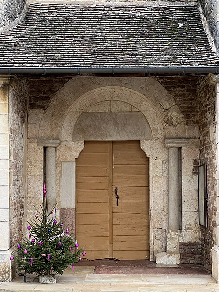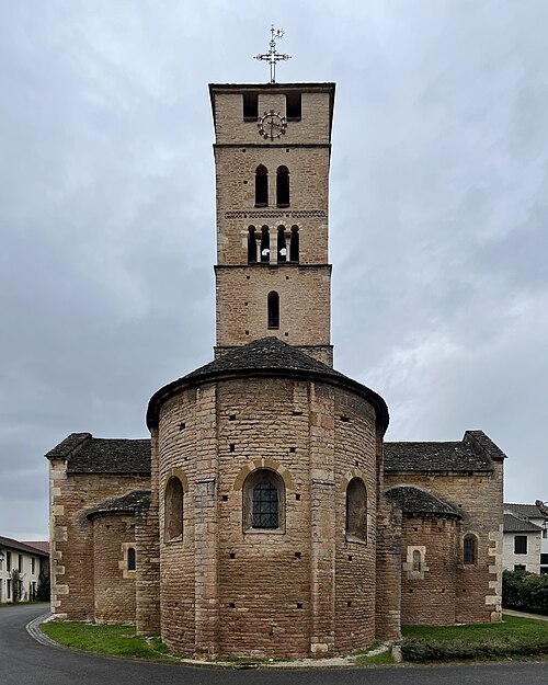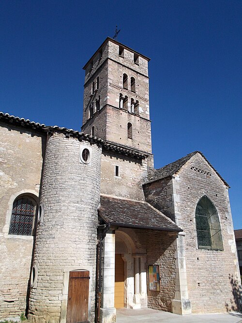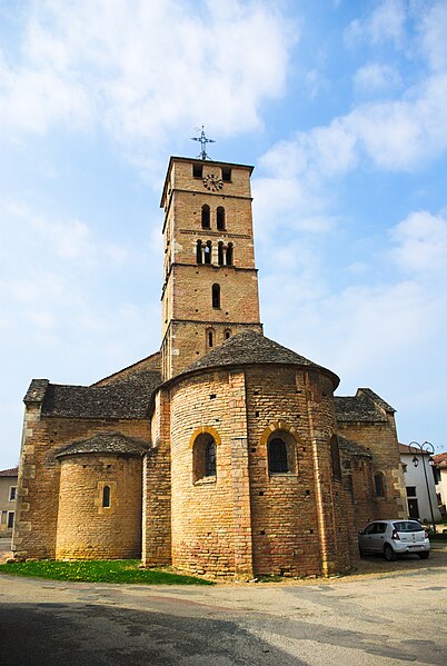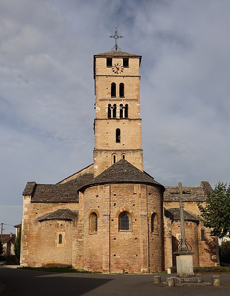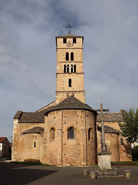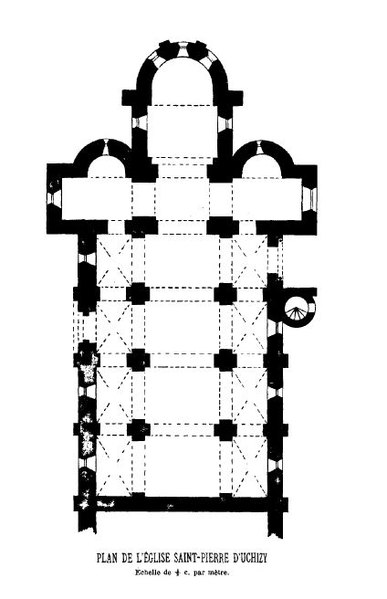 L'église Saint-Pierre se situe à Uchizy, commune du Tournugeois en Saône‑et‑Loire, dans la région Bourgogne‑Franche‑Comté. L'édifice est classé au titre des monuments historiques par un arrêté du 22 octobre 1913. En 1912, l'Académie de Mâcon avait signalé à la Commission des monuments historiques la nécessité de protéger plusieurs églises de l'arrondissement de Mâcon et avait inscrit l'église d'Uchizy parmi les douze monuments les plus anciens et intéressants. La première mention d'une église à Uchizy remonte à la donation faite par le roi Louis le Bègue en 878 à l'abbaye de Tournus, qui portait la description d'« une église dédiée à Saint Pierre » avec ses dépendances. L'édifice tel qu'il existe aujourd'hui paraît avoir été bâti par les moines de Tournus dans le dernier quart du XIe siècle. L'intérieur a fait l'objet d'une restauration complète en 2011 et 2012. Peu avant la Seconde Guerre mondiale, au début de 1939, la paroisse d'Uchizy fut rattachée pour le culte à celle de Lugny à la suite de la création de la communauté pastorale de Lugny, initiative de monseigneur Joseph Robert ; aujourd'hui Uchizy dépend de la paroisse de Tournus. En 2020, l'église a intégré les « Chemins du roman en Mâconnais Sud Bourgogne » et a bénéficié de la pose d'une signalétique spécifique au sein du Pôle d'équilibre territorial et rural Mâconnais Sud Bourgogne. L'édifice présente la particularité d'une façade occidentale masquée par le bâtiment du donjon de l'ancien prieuré, si bien que l'on pénètre par deux portails latéraux : le portail nord, orné d'une archivolte à oves enrubannées, et le portail sud, précédé d'un auvent et flanqué d'une tourelle donnant accès au clocher et au chemin de ronde. Le bâtiment accolé à l'ouest, qui fut prieuré, maison seigneuriale, mairie et école, abrite aujourd'hui une bibliothèque et une salle de réunion. L'église est bâtie en petites pierres bien appareillées et régulières ; elle comprend trois nefs suivies d'un transept en saillie. À l'est de la croisée s'ouvre le chœur, formé d'une travée droite voûtée en berceau et d'une abside en hémicycle, et chaque croisillon ouvre également sur une abside en hémicycle. Les trois nefs sont voûtées ; la nef principale est en berceau brisé, renforcé par des doubleaux en cintre brisé qui la divisent en quatre travées. Le transept se compose d'une croisée de plan rectangulaire dont les quatre angles sont portés par de puissants piliers supportant la masse du clocher ; la croisée communique avec les croisillons par d'imposantes arcades en plein cintre. Le clocher, élevé au‑dessus du transept, abrite deux cloches : la plus grosse, dédiée à la Vierge Marie, a été baptisée le 22 octobre 1878, pèse 860 kg et a été fondue la même année par Gulliet à Lyon ; l'autre, de 57 kg, a été fondue en 1979 par Bollée à Orléans. Construit sur plan carré, le clocher présente quatre faces traitées de façon analogue et se divise horizontalement en cinq étages ; le cinquième niveau, construit en pierres d'un calibre plus gros et éclairé par deux baies carrées, paraît être une surélévation destinée à servir de guet pour le bourg, peut‑être au XVIe siècle dans le contexte des guerres de Religion. Le mobilier comprend des statues du XIXe siècle, un chemin de croix et plusieurs tableaux du XVIIe siècle ; l'un d'eux, daté de 1629 et signé du monogramme « GP », représente saint Blaise avec les attributs liés à son martyre. Un vitrail de 1974 intitulé Saint Pierre pêcheur d'hommes, œuvre du maître verrier Paul Duckert formé à Taizé, figure également parmi les œuvres de l'église. L'édifice est consacré dans le diocèse d'Autun et relève de la paroisse Saint‑Philibert en Tournugeois, dont le siège est à Tournus ; il demeure un lieu de culte catholique. Des ressources et documents complémentaires sont disponibles en ligne, notamment sur les bases Mérimée, Clochers de France et l'Observatoire du patrimoine religieux, ainsi que sur le site de la paroisse Saint‑Philibert.