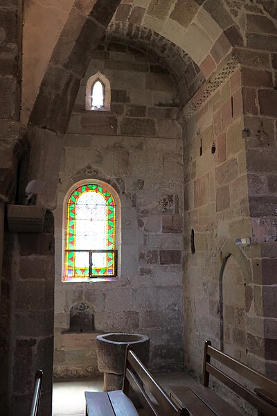 L'église Saint-Pierre se trouve à Bessuéjouls, dans le département de l'Aveyron en région Occitanie. Elle est inscrite au titre des monuments historiques en 1927 et classée en 1931. Du prieuré roman subsistent seulement les deux étages inférieurs du clocher : les constructions furent ruinées par les Anglais ou les Routiers et, à la fin du XVIe siècle, l'église, des bâtiments au nord et le dernier étage du clocher furent reconstruits. Deux avant-corps, au nord et au sud du clocher, abritent chacun un escalier à volées droites contournant un massif d'échiffre et donnent accès au premier étage. Ce premier étage comprend une travée centrale autrefois couverte par une coupole octogone dont ne subsistent que les trompes, ainsi que deux bas-côtés voûtés. Les chapiteaux historiés sont ornés d'entrelacs, de tresses et de figurations, et le premier étage a conservé intactes ses vingt et une colonnettes. Le corps de logis qui abritait le dortoir et s'appuyait contre la face occidentale du clocher a été définitivement rasé. Le maître-autel comporte un retable des XVIIe ou XVIIIe siècles représentant saint Pierre et saint Paul au pied du crucifix. Une chapelle latérale dédiée au Sacré-Cœur est meublée d'un autre retable de la même époque, où deux anges adorateurs se prosternent devant un cœur rayonnant. La particularité de l'édifice est une chapelle haute de style roman, située au premier étage du clocher et accessible depuis le fond de l'église par une petite porte et un escalier. Cette porte est surmontée d'un linteau dit « en mitre d'évêque », orné d'un motif tressé. La salle mesure environ six mètres de côté et sept à huit mètres de hauteur ; elle forme une chapelle cubique soutenue par six colonnes à chapiteaux historiés et quatre rangées de colonnettes alignées, évoquant un cloître aérien ou un triforium. Selon Paul Deschamps, l'autel et les chapiteaux de la chapelle aérienne datent de la fin du XIe ou du début du XIIe siècle. N. Breton propose pour cette chapelle une datation plus ancienne, Xe ou XIe siècle, ce qui, selon lui, en ferait l'une des plus anciennes chapelles romanes de France et l'une des mieux conservées.