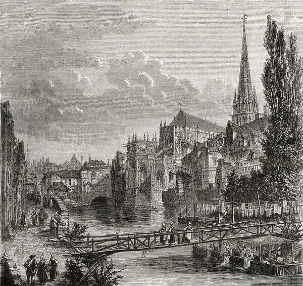 L'église Saint-Pierre de Caen, située dans le Calvados, est l'un des principaux édifices religieux du centre-ville ancien et figure sur la liste des monuments historiques depuis 1840. Successivement appelée Saint-Pierre de Darnetal, Saint-Pierre-sous-Caen, Saint-Pierre-du-Châtel et Saint-Pierre-en-Rive, elle constitue le plus grand édifice religieux de Bourg-le-Roi et accueillait les principales cérémonies publiques de la cité. C'est notamment dans cette église que le Te Deum fut chanté en présence des représentants civils et religieux après l'abjuration d'Henri IV, marquant la fin des guerres de religion. Fermée par décret du représentant du peuple Laplanche le 20 novembre 1793, elle servit de Temple de la Raison puis de l'Être suprême jusqu'en 1795, avant d'être rendue au culte catholique le 4 juin 1795.