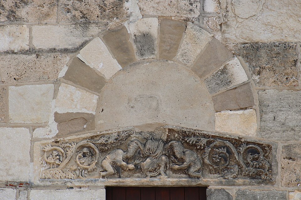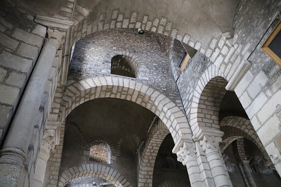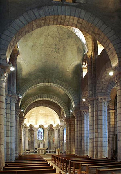 Une particularité remarquable est le couvrement de la nef par des coupoles sur trompes ; selon Thiollier, trois églises en France présentent ce dispositif (Le Puy, Saint-Hilaire de Poitiers et Champagne), et à Champagne une coupole recouvre exceptionnellement deux travées. La façade occidentale était précédée jusqu’en 1848 par un haut porche-tour de plan carré dont la trace reste visible ; sa partie haute aurait été démolie en 1749.