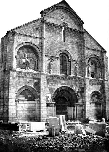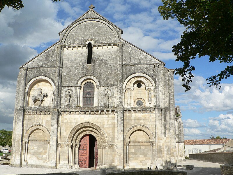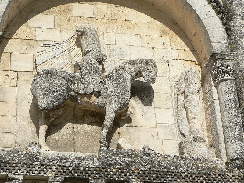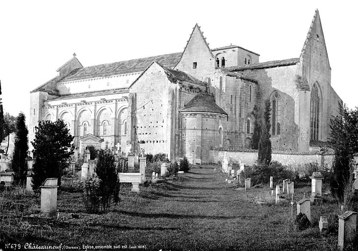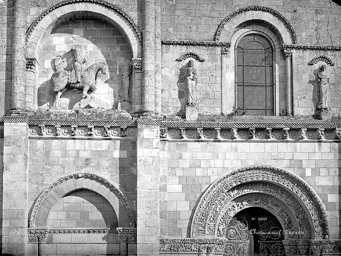 L'église Saint-Pierre, située à Châteauneuf-sur-Charente (Charente), est un ancien prieuré bénédictin dépendant de l'abbaye de Bassac. Sa construction remonte au deuxième quart du XIIe siècle, tandis que des vestiges de murs en petit appareil laissent penser que quelques parties du prieuré datent du XIe siècle. Classée parmi les monuments historiques en 1862, elle a bénéficié d'importantes campagnes de restauration menées notamment par Paul Abadie (1855-1856 et 1859-1862) puis sous la direction du curé en 1863 et 1878, enfin par L. Martin en 1899 ; Abadie a notamment restitué la toiture disparue pendant la Révolution et repris de nombreux éléments sculptés. Église de style roman, elle est particulièrement remarquable pour sa façade sculptée, dont la statue équestre de Constantin est un des motifs les plus célèbres. La façade, intacte, présente au rez-de-chaussée trois arcades — celle du centre constituant l'entrée — ornées de colonnes et d'archivoltes richement sculptées de figures et de feuillages. Un bandeau à consoles surmonte ces arcades, les intervalles étant occupés par des rosaces, et des pilastres saillants s'élèvent entre les arcades pour soutenir les colonnes de la partie supérieure. Les deux colonnes centrales portent un grand arc qui marque le sommet du pignon ; au-dessus de la porte se trouve une croisée à colonnes flanquée de deux statues nimbées. Dans les entrecolonnements latéraux se lisent des dispositifs d'arcs sculptés : l'un porte deux figures et renferme un petit arc dont le fond est percé de deux oculi, l'autre, du côté nord, représente un cheval et son cavalier. À l'intérieur, la nef et les bas-côtés sont voûtés en berceau, la nef conservant une belle voûte en berceau brisé à l'appareillage régulier, et l'édifice conserve de nombreux chapiteaux sculptés. Seul un bras du transept appartient à la construction primitive ; l'autre bras ainsi que le chœur ont été refaits au XVe siècle, période au cours de laquelle le clocher et le transept nord ont également été repris, ce changement de style se révélant dans les voûtements et dans le remplage flamboyant de la verrière du chevet plat. Le clocher, placé à l'extrémité nord du transept, est une tour carrée dont le dernier étage est percé sur chaque face d'une fenêtre à lancettes géminées.