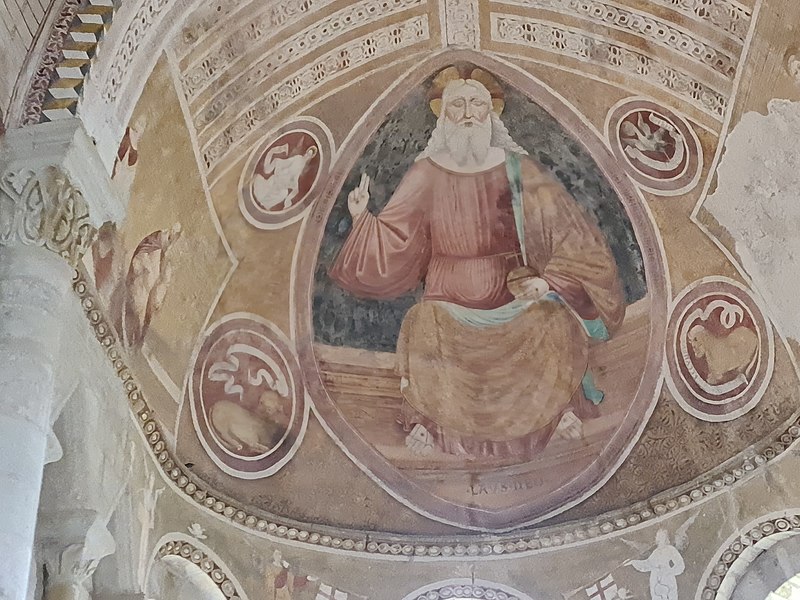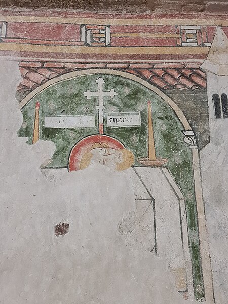 La litre seigneuriale apposée au début du XVIe siècle par les seigneurs de La Roche-Othon couvre également l'absidiole et affiche leurs armes et des représentations de chevaliers. Un grand saint Christophe peint au bas de la nef, daté de 1580, est destiné à protéger contre la malemort.
