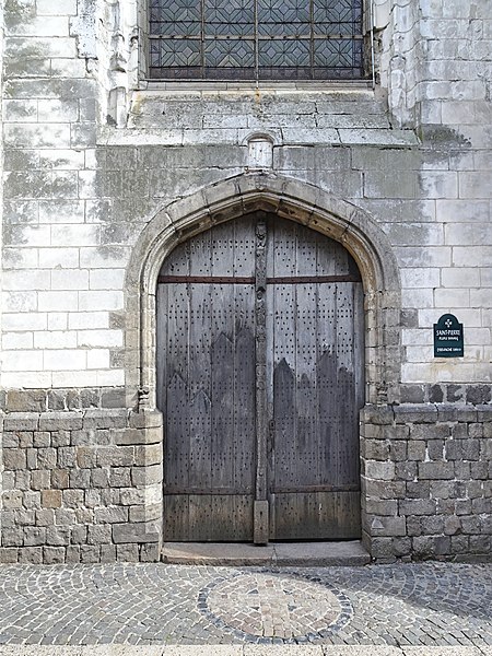 L'église Saint-Pierre, dite aussi Saint-Pierre de Flers-Bourg pour la distinguer de celle d'Ascq, se situe à Flers-lez-Lille, aujourd'hui quartier de Villeneuve-d'Ascq, dans le Nord de la France. Le portail et ses vantaux sont classés au titre des monuments historiques ; l'ensemble de l'édifice est inscrit à l'Inventaire supplémentaire des monuments historiques depuis 1977. On sait qu'un édifice religieux existait en ce lieu avant la création de Lille au XIe siècle, et des tombes mises au jour sous le chœur pourraient être antérieures à cette période. De importants travaux d'agrandissement ont été réalisés au XVe siècle. La nef présente des colonnes en grès datées du XVIe siècle, et l'église dépendait alors de la collégiale Saint-Pierre de Lille. La tour carrée, haute de 35 mètres, a été construite entre 1520 et 1530 pour remplacer une tour plus ancienne, près de laquelle se trouvaient d'étroites meurtrières et qui appartenait à la seigneurie de Roques ascquoise. À l'été 1566, des iconoclastes détruisirent plusieurs statues. Le clocher et le portail datent du XVIe siècle et l'église reçut en 1850 une voûte en berceau. On y trouve deux chapelles : une dédiée à la Vierge, datant du XIIIe siècle, et une autre dédiée à saint Pierre, dont la construction est antérieure à 1574. En 2013, la ville de Villeneuve-d'Ascq a rénové le beffroi des cloches pour 40 000 euros : la structure en chêne a été entièrement remplacée, tournée d'un quart de tour pour réaligner le balancement des cloches avec l'axe de la nef, avec un assemblage à tenons-mortaises et chevilles en acacia ; les trois cloches ont été remises en service et le plancher réparé. L'édifice, en forme de croix latine et orienté vers l'est, présente une nef voûtée en berceau flanquée de bas-côtés aux voûtes d'ogives en plâtre. Le portail d'entrée en bois sculpté comporte un trumeau abritant une statue de saint Pierre sous un dais ; il est orné des armes de Noyelles-Mailly et décoré de l'aigle bicéphale de Charles-Quint encadré du collier de la Toison d'Or.