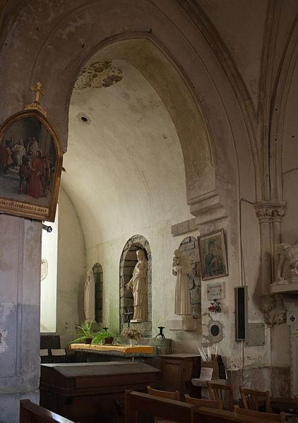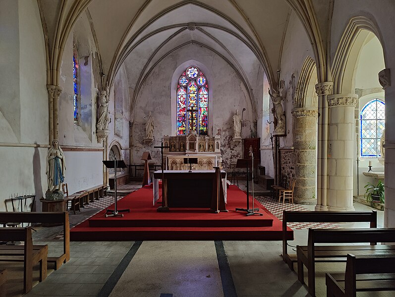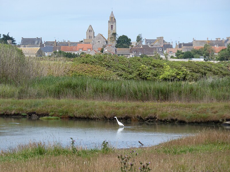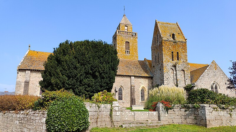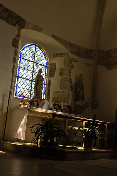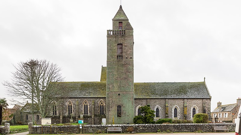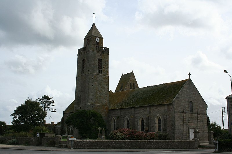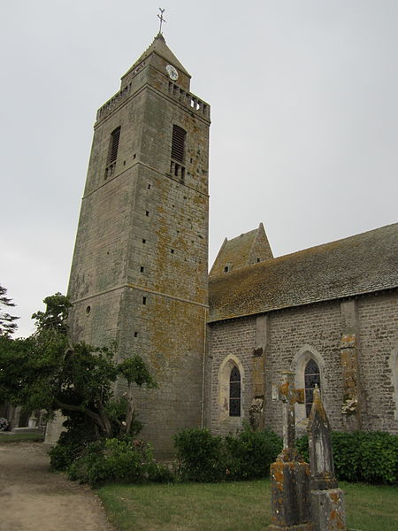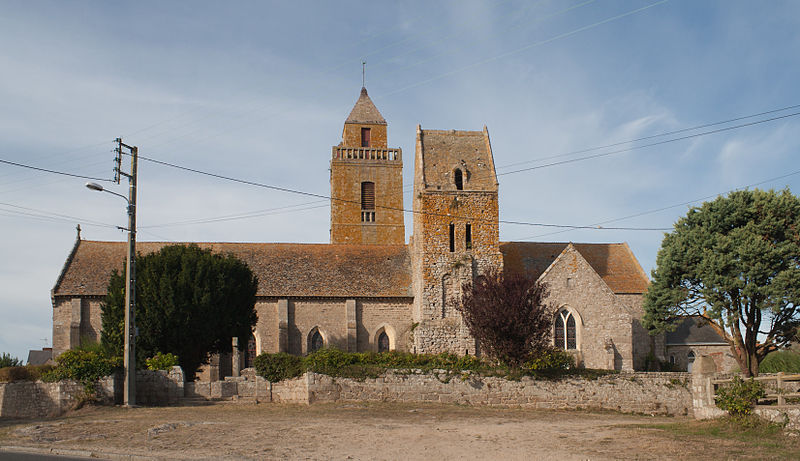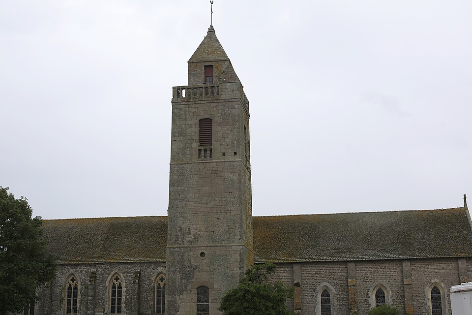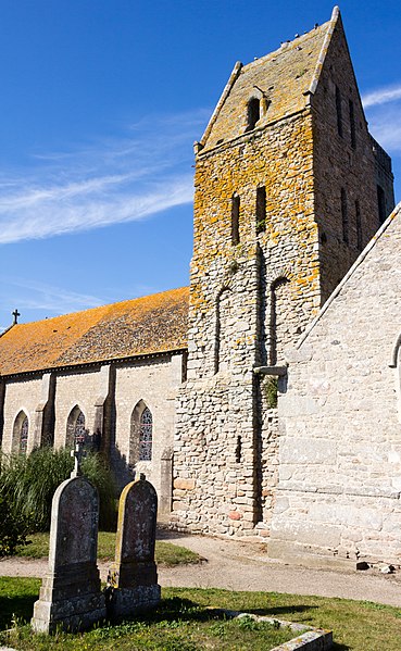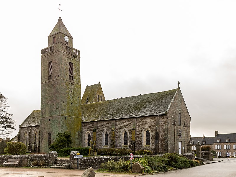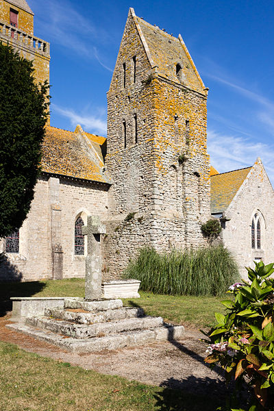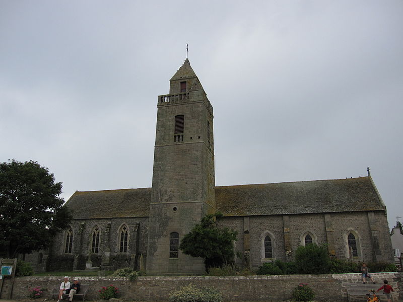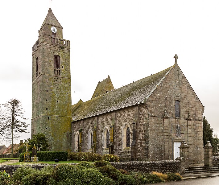 Le clocher roman, élevé en moellons de granit liés au mortier de chaux, présente trois niveaux marqués par des retraits successifs ; le deuxième étage est percé d'étroites baies géminées et la toiture repose sur un encorbellement qui paraît remonter à la construction d'origine. Au rez-de-chaussée, des arcs bandés renforcent la maçonnerie et allégeraient les murs, et une petite fenêtre est percée dans l'épaisseur d'un contrefort plat du côté sud. La façade date du XVIIIe siècle tandis que la nef actuelle est l'œuvre du XIXe siècle. Le cimetière, aujourd'hui désaffecté, conserve quelques pierres tombales du XIXe siècle, une croix hosannière en granite et un vieil if. À proximité se trouve la chapelle des marins, Notre-Dame de Bon-Secours, d'origine romane, où sont exposés des ex-voto dont les restes d'un trois-mâts échoué au large en 1860.