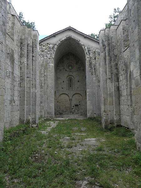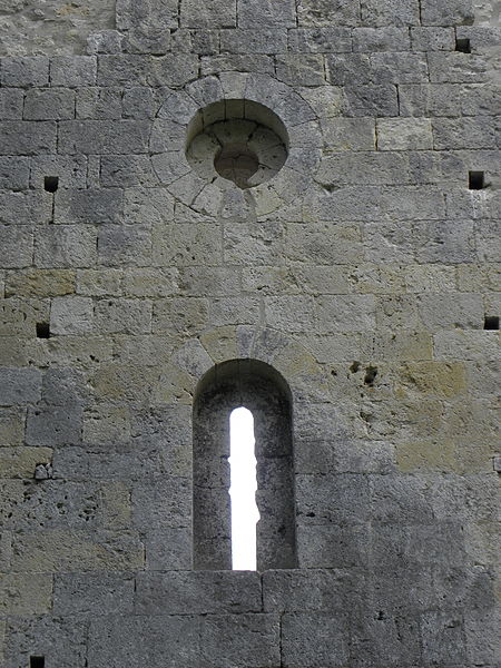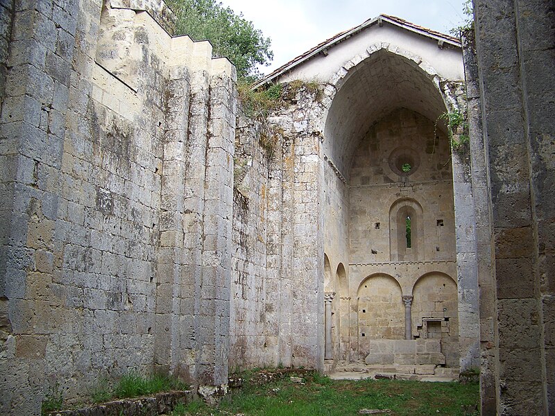 De dimensions modestes, l'édifice mesure vingt-sept mètres de long sur neuf mètres de large. Les murs, en moyen appareil très homogène et régulier, présentent des pierres taillées avec des rayures obliques marquées. Les voûtes et le toit de la nef ont disparu ; seul le chœur a conservé son couvrement, une voûte en berceau brisé sous un toit à deux pentes. L'accès se fait par un portail en plein cintre à triple voussure ; le tympan, taillé dans une plaque de marbre remployée et posé sur un linteau monolithique sans décor, est occupé par un chrisme. La nef est unique, autrefois voûtée en berceau et divisée en trois travées par des pilastres sur dosserets ; à l'extérieur, les murs sont rythmés par des contreforts de faible épaisseur et une fenêtre en plein cintre, placée assez haut, éclaire chaque travée. Dans l'angle sud‑ouest se trouve un escalier à vis de plan carré qui desservait le clocher.