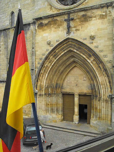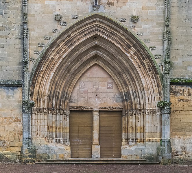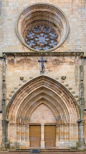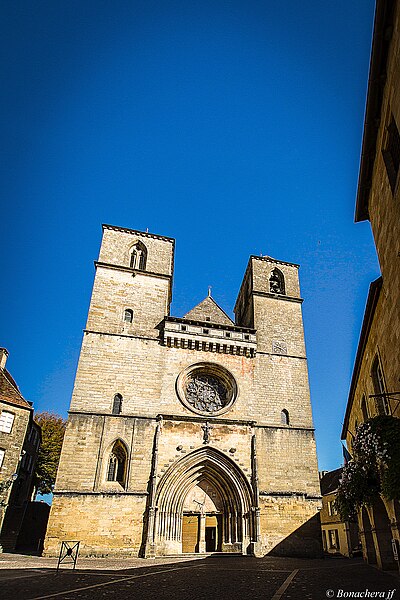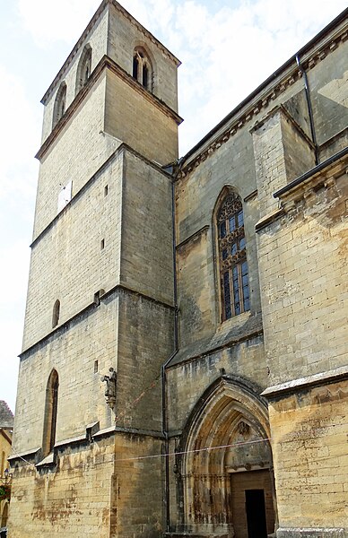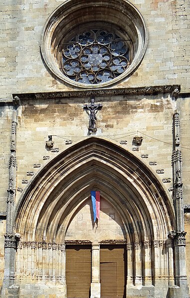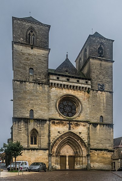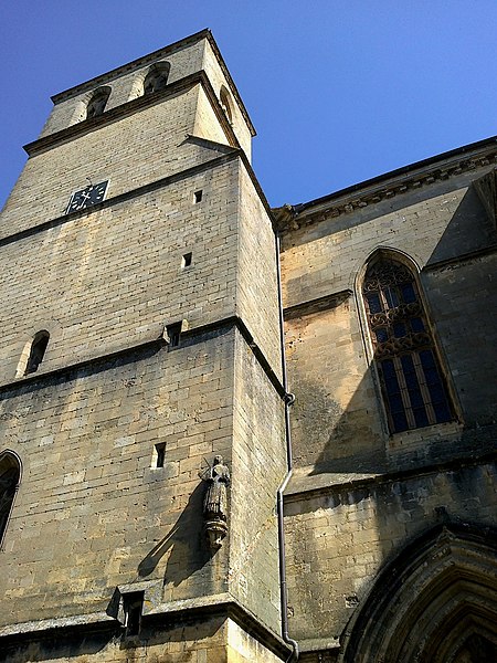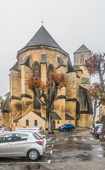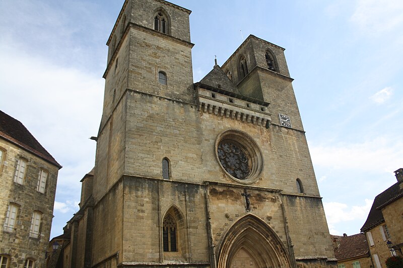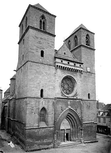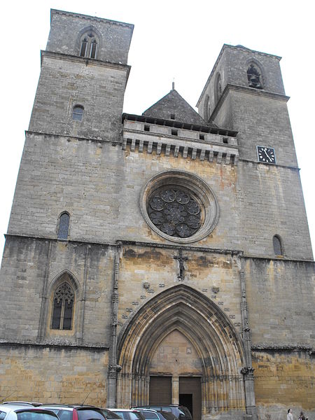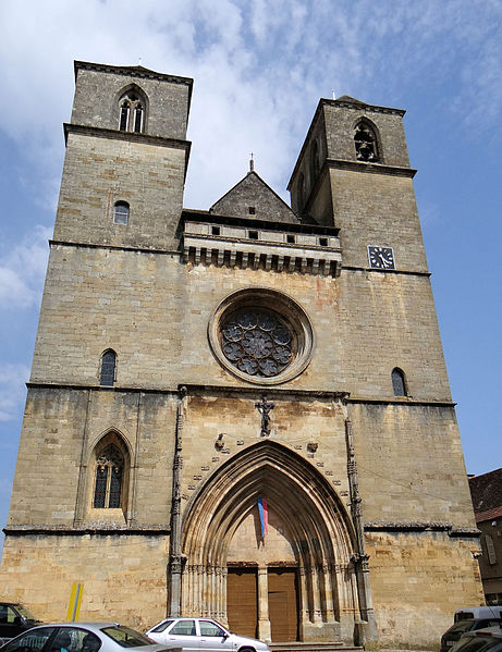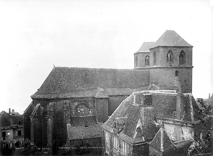 L'église Saint-Pierre de Gourdon est l'église paroissiale dédiée à saint Pierre et domine la butte du village. Paroisse depuis le Moyen Âge, elle dépendait directement de l'évêque de Cahors, qui nommait le titulaire de la cure. L'édifice semble avoir des origines au XIIe siècle et l'église paroissiale est mentionnée en 1143 parmi les possessions de l'abbaye du Vigan. La majeure partie de l'édifice actuel — chevet, nef et au moins certaines chapelles — a été construite dans les trente premières années du XIVe siècle. En 1303 les consuls et habitants demandèrent l'autorisation de reconstruire l'église et un impôt spécifique fut établi; en 1307 un contrat fut passé pour la fourniture de pierres. Vers 1311 la nef et la tour sud étaient achevées et le maître-maçon Pierre Deschamps fut requis pour expertiser les voûtes, constatant la nécessité d'ajouter des arcs formantets. En 1335 l'église fut livrée au culte et, à cette date, une seule tour du massif occidental était achevée ; la tour nord est également mentionnée comme achevée en 1335. Le début de la guerre de Cent Ans entraîna l'interruption des travaux et la façade resta inachevée. Les campagnes de construction reprirent en 1490 et s'achevèrent en 1509 ; elles comprennent l'achèvement de la seconde tour, le portail occidental et la première chapelle nord. Le hourd maçonné sur mâchicoulis qui surmonte la rose ne semble pas antérieur à la fin du XVIe siècle. L'église subit de graves dégradations lors de l'invasion des troupes protestantes du capitaine Duras le 4 septembre 1562 et, faute de réparations, elle fut décrite comme « en ruyne ». Un litige entre le chapitre de l'église Notre-Dame de l'Assomption du Vigan et le recteur sur la charge des travaux aboutit à une condamnation en 1591 ; des réparations commencèrent à partir de 1608 et les mâchicoulis au‑dessus de la porte d'entrée pourraient dater de cette période. Des réparations importantes ont eu lieu au XIXe siècle et l'édifice ne souffrit pas de la Révolution. L'église figure sur la liste de 1841 des monuments, son classement au titre des monuments historiques ayant été régularisé en 1906. De caractère dépouillé, l'édifice relève de l'école gothique languedocienne : sa façade est flanquée de deux tours et la partie centrale est surmontée de mâchicoulis. La nef mesure 41 m de long, 12 m de large et 21 m de haut ; les tours s'élèvent à 35 m. Le mobilier comprend un orgue de tribune construit en 1887 par Édouard et Eugène Stoltz, réinstallé dans son buffet en 1987. Parmi les pièces protégées figurent un retable du XVIIe siècle, plusieurs bas-reliefs dorés attribués aux sculpteurs Tournié (fin XVIIe–XVIIIe siècle), un bénitier du XVIIe siècle, un cadran solaire du XIVe siècle porté par la statue d'un religieux et un antependium de l'école des Tournié ; plusieurs de ces objets sont classés ou référencés dans la base Palissy. Le mobilier comporte encore un chemin de croix en ronde-bosse de style classique, une chaire d'époque Restauration, des fonts baptismaux, un autel décoré par le peintre Barbieri en 1833 (restauré en 2005-2006) ainsi que des panneaux sculptés de l'Annonciation et de la Visitation entourant une Pietà. L'église conserve des fragments de vitraux géométriques du XIVe siècle et des vitraux historiés du XVIe siècle dans la rosace au‑dessus du portail occidental ; les vitraux du chœur furent réparés en 1610 par Olivier Rey, verrier de Gourdon, en utilisant des verres anciens.