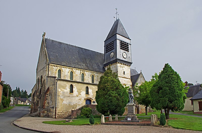 L'église Saint-Pierre de Guerbigny se trouve au centre du village, dans le sud de la Somme, non loin de Montdidier. L'existence d'un lieu de culte à Guerbigny est attestée dès 1108 ; l'édifice actuel a été construit au XIIIe siècle et remanié aux XVe et XVIe siècles. Le pignon de la façade fut restauré en 1776, le portail et la toiture des bas-côtés au XIXe siècle. L'église a été endommagée pendant la Première Guerre mondiale et restaurée dans l'entre-deux-guerres ; elle a de nouveau subi des dommages lors de la campagne de France en 1940 et a été restaurée après la Seconde Guerre mondiale. L'édifice est protégé au titre des monuments historiques par un arrêté du 20 août 1919.