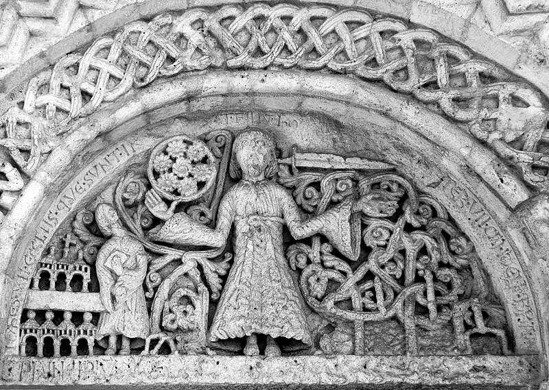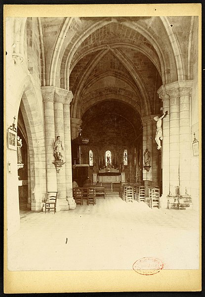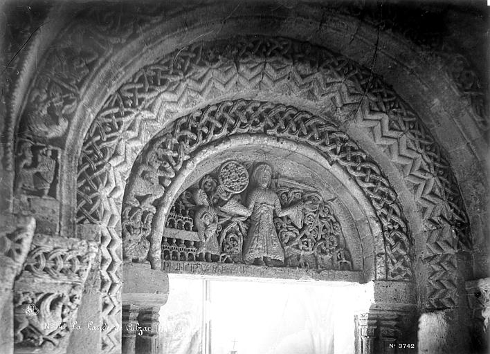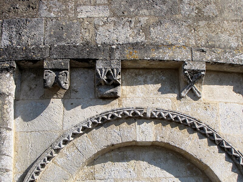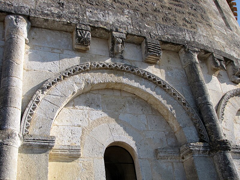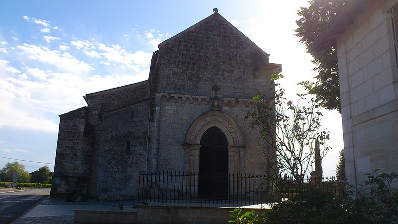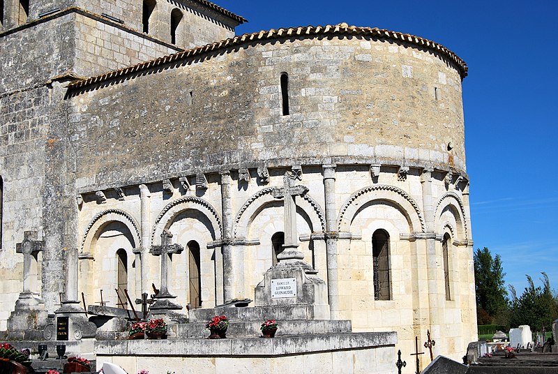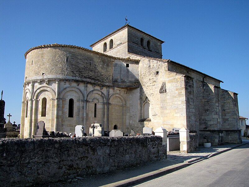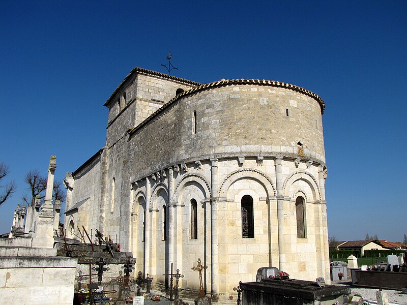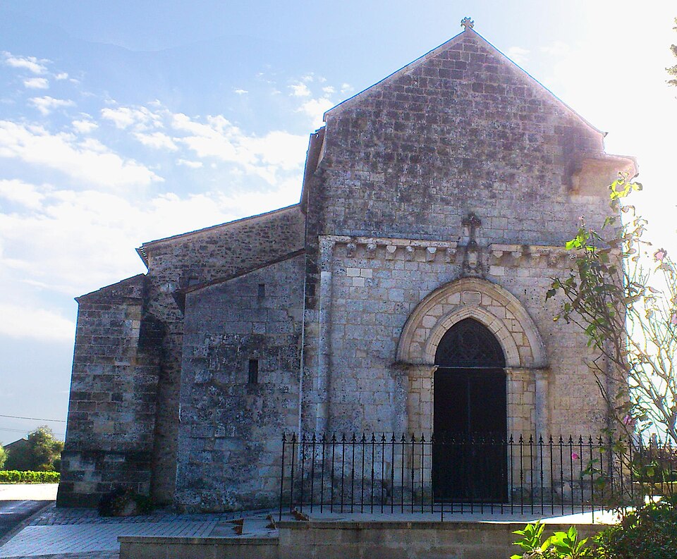 L'église Saint-Pierre, située à La Lande-de-Fronsac en Gironde, est inscrite au titre des Monuments historiques. L'édifice conserve un plan roman comprenant une abside en cul-de-four, un chœur de deux travées voûté en berceau plein-cintre et une nef voûtée d'arêtes ; la travée qui précède le chœur, sensiblement carrée, supporte le clocher. Le chevet, le chœur et le clocher relèvent de la tradition romane, tandis que la nef présente des aménagements gothiques. L'abside semi-circulaire et les voûtements orientaux traduisent des campagnes de construction médiévales, et des réparations ont été réalisées aux siècles suivants. L'intérieur de l'abside et du chœur est rythmé par des arcatures retombant sur des colonnes engagées qui encadrent une série de fenêtres dont la forme primitive a été en partie modifiée ; le mur latéral sud conserve une fenêtre intacte. Les colonnes de l'arcature et de l'arc triomphal sont surmontées de chapiteaux sculptés : feuilles, têtes dont les bouches laissent échapper des rinceaux, et lions adossés figurent parmi les motifs. Au nord de la travée du clocher s'ouvre une chapelle latérale dédiée à la Vierge, élevée à la fin du XVe siècle, et, à l'est de cette chapelle, une sacristie du XVIIIe siècle voûtée en arc de cloître dessert l'édifice. Une surélévation du chevet a été aménagée autrefois pour servir de refuge, et un reste d'échauguette à l'angle sud‑ouest de la nef atteste d'un dispositif défensif lié aux guerres de Religion. Le portail latéral sud constitue un exemple remarquable de sculpture romane : une quadruple archivolte décorée d'entrelacs et de motifs variés encadre un tympan sculpté d'une scène de l'Apocalypse. Le tympan représente la première vision de saint Jean et figure, de manière stylisée, saint Jean témoin, le Fils de l'Homme entouré d'étoiles et d'une épée, ainsi qu'un personnage nu pris dans des lianes ; des inscriptions gravées, partiellement effacées, accompagnent la scène, et l'étole du Christ porte la mention ZONA AUREA. Les quatre voussures et les ébrasements du portail, inspirés de la sculpture de Saintonge, multiplient figures humaines, apôtres, chimères et entrelacs dans un décor très animé, tandis que les chapiteaux d'entrée, quoique érodés, conservent des corbeilles à lianes et des têtes d'animaux. Le chevet se compose de neuf pans délimités par des colonnes à chapiteaux non sculptés et percés chacun d'une baie étroite sous archivolte, la corniche étant portée par vingt‑cinq modillons dont dix‑sept sculptés ; leur répertoire, daté de la seconde moitié du XIIe siècle, va des billettes et cylindres aux étoiles, coquillages, masques humains ou diaboliques et animaux. Un tableau de la Crucifixion, réalisé par un peintre bordelais selon une inscription datée de 1622 et offert en 1642, est fixé sur le mur nord de la nef au‑dessus de la porte de la sacristie. À l'extérieur, une croix de cimetière présente une base polygonale à degrés typique de la fin du XVe siècle, un socle attribué au XVIIIe siècle et un fût du début du XIXe siècle, et les contreforts portent les vestiges de deux cadrans canoniaux gravés utilisés autrefois pour déterminer les heures liturgiques. L'ensemble témoigne d'une continuité d'usage et d'interventions successives qui ont fait évoluer la lecture architecturale de l'église Saint‑Pierre.