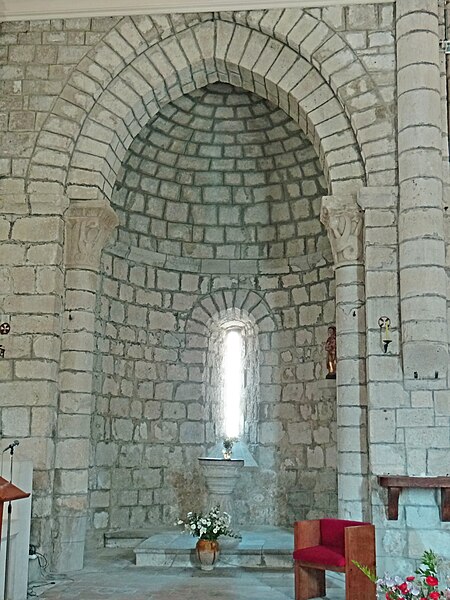 L'église Saint-Pierre, de plan à abside arrondie flanquée de deux absidioles sur les bras du transept, se situe à La Sauvetat-de-Savères, dans le département du Lot-et-Garonne. Quatre chapiteaux romans, placés aux retombées des arcs des absidioles, sont conservés dans l'édifice et ont été inscrits au titre des monuments historiques le 21 mai 1957. Les archives du prieuré ont été détruites lors des diverses guerres qui ont affecté la région, ce qui rend incertaine une partie de son histoire. Selon l'abbé Barrère, cité dans des récits locaux, Bernard de l'ordre de Cluny, né près d'un château de La Sauvetat, fut envoyé en Espagne par saint Hugues à la demande du roi Alphonse VI ; certains auteurs identifient cette naissance à La Sauvetat-de-Savères, tandis que d'autres proposent une autre Sauvetat. Le village a été fondé par le chapitre de la collégiale Saint-Caprais d'Agen, qui y établit un prieuré non conventuel mentionné dans le pouillé de Jean de Valier, sans que sa date de fondation soit connue avec précision. Par comparaison stylistique, Georges Tholin attribue la construction du sanctuaire à la fin du XIIe siècle. Au Moyen Âge le bourg s'est développé autour de l'église en bénéficiant du droit d'asile et de protections seigneuriales multiples : par un accord de 1203 le chapitre céda la moitié du fief au comte Raymond VI de Toulouse, qui accepta d'assurer sa garde et, selon cet accord, fit construire des remparts dont il ne subsiste plus que des vestiges. En 1205, le comte et le chapitre accordèrent à La Sauvetat les coutumes d'Agen, et en 1235 l'évêque d'Agen reconnut la propriété du chapitre sur la ville et sur l'église Saint-Pierre. Au fil des siècles la seigneurie changea de mains : en 1271 le roi de France devint coseigneur, puis la localité passa au XIVe siècle sous la suzeraineté anglaise, période pendant laquelle La Sauvetat subit des occupations successives et des violences liées à la guerre de Cent Ans; le prieuré en fut ruiné et réuni à la mense du chapitre de Saint-Caprais en 1351. Durant la guerre de Cent Ans et les conflits ultérieurs la ville et l'église subirent pillages et destructions, et des bandes de routiers opérèrent dans la région. À l'époque moderne, l'église servit de défense locale : au XVIe siècle elle fut transformée en place forte, le mur du cimetière constituant la première enceinte et renforcé par un ravelin, la tour romane du clocher étant la partie principale aménagée pour la défense. En 1589, des compagnies s'y retranchèrent et furent attaquées le 15 août par les troupes de la Ligue; en 1597 l'évêque d'Agen réconcilia l'église et le cimetière, constatant alors leur mauvais état, la toiture effondrée, les fonts détruits et les ornements détériorés. Au début du XVIIe siècle les consuls firent des emprunts pour réparer la fortification, puis après la Fronde les fossés furent comblés et l'emplacement du ravelin transformé en cimetière. Pendant la Révolution, une cloche fut enlevée en mai 1793 et le culte fut profané en décembre 1793 lors de l'installation temporaire d'un culte de la Raison. L'édifice fut restauré au XIXe siècle, avec une façade surmontée d'une flèche. Sur le plan architectural, Georges Tholin rapproche l'église Saint-Pierre de La Sauvetat-de-Savères de quelques sanctuaires du Lot-et-Garonne présentant un plan à trois absides implantées en trèfle. L'église, fortement mutilée par les conflits, a conservé une nef unique prolongée par un chœur en abside, tandis que deux absidioles plus étroites et moins hautes forment le transept. La longueur de la nef, du fond de l'abside au portail, est de 31,50 m, et la largeur du transept, d'une absidiole à l'autre, est de 14 m.