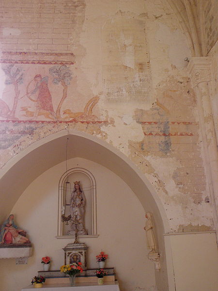 L'église Saint-Pierre est une église catholique située à Landes, dans le département de la Charente-Maritime, en France. D'origine romane, elle a été incendiée pendant la guerre de Cent Ans puis remontée aux XIVe-XVe siècles, notamment le clocher, les murs gouttereaux, l'abside et les voûtes. La nef conserve une partie centrale plus ancienne, agrandie dans les deux sens par des adjonctions qui paraissent remonter au XIIIe siècle. Des peintures murales datées du XIVe siècle décorent plusieurs parois. À l'origine, ces décors à la détrempe couvraient les murs jusqu'à la hauteur des chapiteaux et associaient badigeons teintés, ornements simples, tracés d'appareil et scènes peintes à divers endroits et à différentes hauteurs. Certaines images sont superposées les unes aux autres. Parmi les sujets figurés figurent les saintes femmes au tombeau, l'Annonciation, la Nativité, le baptême du Christ et le buste de saint Louis. Les parois ornées ont été classées au titre des monuments historiques en 1903. L'édifice lui‑même a été inscrit en 1994. Des photographies montrent notamment le clocher et les fresques du XIVe siècle.