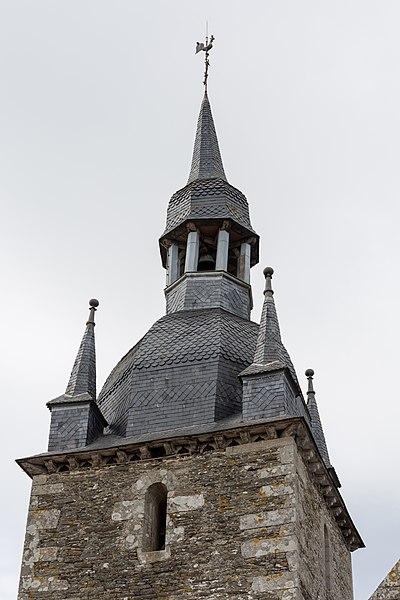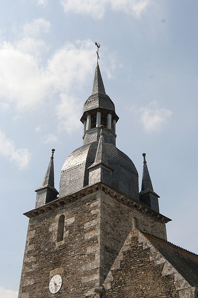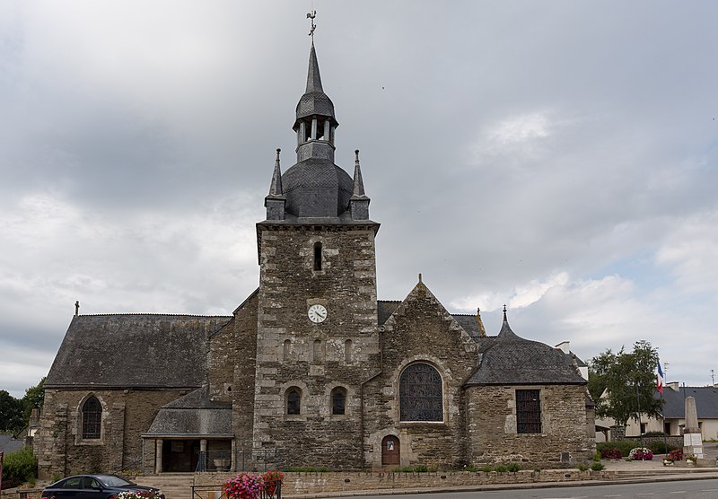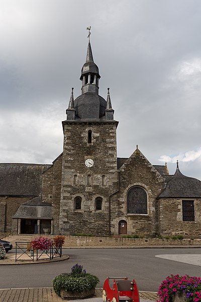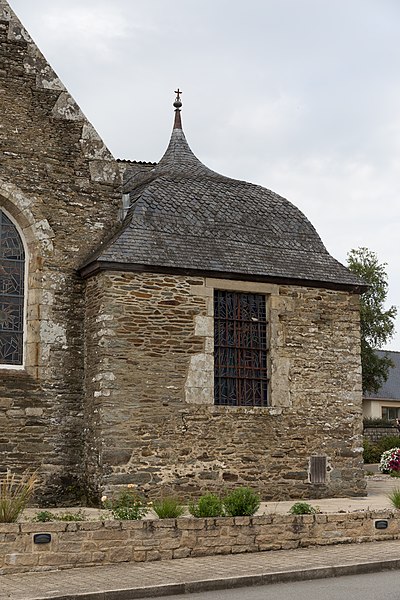 L'église Saint-Pierre de Lanouée (Morbihan) est un petit édifice à construction hétérogène, inscrit au titre des monuments historiques par arrêté du 1er avril 1963. Elle conserve des vestiges romans, notamment des murs occidentaux de la nef; la partie la plus ancienne paraît être le mur sud de la nef avec son contrefort plat, près du porche en bois. Le bas-côté nord, reconnaissable à ses pignons, est un agrandissement de la nef primitive attribué au XVe siècle, et une fenêtre nord témoigne de cette époque. Le portail ouest a probablement été refait au XIIIe siècle, tandis qu'une importante reconstruction s'est déroulée dans la première moitié du XVIe siècle, touchant le portail, la nef, le bas-côté nord et le départ du bras sud du transept. Le bâtiment a été largement remanié aux XVIIIe et XIXe siècles : le clocher actuel, daté de 1757, surmonte une tour carrée qui semble être une tour romane transformée au XVIIIe siècle. Un ancien clocher ouest, construit en 1720, a été détruit. La sacristie a été aménagée dans l'ancienne trésorerie et l'église est surélevée, accessible par de hauts emmarchements extérieurs. Des remaniements de détail ont été effectués côté est au début du XXe siècle. Le mobilier comprend trois pièces inscrites dans la base Palissy : le maître-autel avec son retable et son tabernacle, datés des XVIIe et XVIIIe siècles et classés en 1974 ; une croix-reliquaire du XVIIIe siècle, protégée depuis 1963 ; et une main-reliquaire du XVIe siècle, également classée depuis 1963. L'ensemble témoigne d'une longue évolution architecturale mêlant éléments romans, vestiges gothiques et reconstructions modernes. Cette histoire complexe reflète des campagnes de construction et de restauration successives.