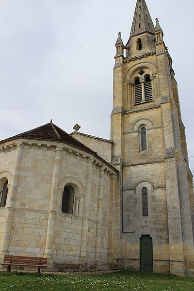 L'église Saint-Pierre, édifiée au XIIe siècle, se situe à Lansac en Gironde. L'édifice a sans doute été incendié pendant les guerres de Religion : des traces sont encore visibles sur les murs sud de la nef. Une restauration a eu lieu au XVIIe siècle, puis l'église a été fortement remaniée au XIXe siècle. Elle présente une nef unique qui s'achève par une abside polygonale. La nef a été couverte au XIXe siècle par une voûte d'ogives et un clocher néo-roman y a été élevé au XIXe siècle. La façade nord conserve des chapiteaux au décor roman. L'abside et le mur nord ont été classés au titre des monuments historiques en 1921 ; l'ensemble de l'église, à l'exception des parties classées, a été inscrit en 2007. Des ressources en ligne existent pour compléter ces informations, notamment Clochers de France, l'Observatoire du patrimoine religieux et la base Mérimée.