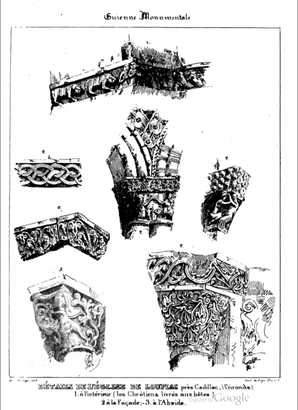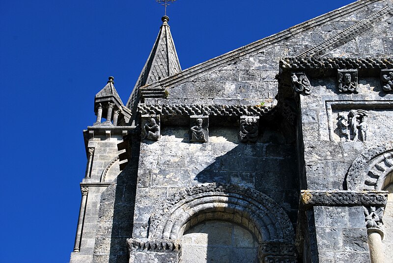 L'église Saint-Pierre de Loupiac (Gironde) se situe au sud-est du village, au nord de la route départementale D10E8, entre Cadillac et Sainte-Croix-du-Mont. D'époque romane, apparentée à la fin du XIe ou au début du XIIe siècle, elle présente un plan en croix latine avec une nef sans bas-côtés, un transept et trois chapelles semi-circulaires formant des absides voûtées en cul-de-four. La façade occidentale s'articule autour d'un avant-corps : une large porte en plein cintre, aux archivoltes ornées d'entrelacs et de dents de scie, retombe de chaque côté sur quatre colonnes à chapiteaux foliacés. Au-dessus, un bandeau supporte trois arcades portées par des colonnes sculptées et surmontées d'un grand bas-relief frémissant en trois thèmes : Adam et Ève au pied de l'arbre, le Christ en majesté entouré de onze disciples, et l'Agneau mystique entre deux anges. Une corniche à têtes de clou et un fronton triangulaire percé d'une baie plein cintre couronnent la façade, qui conserve l'essentiel du décor roman. Le chœur, élevé de cinq marches au-dessus du sol de la nef, est séparé du transept par un grand arc doubleau reposant sur des colonnes accouplées ; les murs latéraux de l'abside centrale portent une arcade ornée d'un bandeau sculpté d'entrelacs, de feuillages, d'oiseaux et de figures humaines. Un bas-côté nord a été ajouté au XVIIIe siècle et des remaniements ont été réalisés après un incendie. À l'origine, le clocher central était un pignon ajouré élevé sur un arc ; lors des guerres de Religion il fut transformé en tour carrée à vocation défensive. Au XVIe siècle la nef fut flanquée d'une tour carrée au sud, puis l'édifice a subi d'importantes interventions au XIXe siècle : des travaux menés autour de 1843–1845 sous la direction de l'architecte Girard d'après un projet de Michel Henri Duphot, puis une restauration conduite entre 1850 et 1859 par Paul Abadie, qui a notamment abattu le bas-côté pour restituer le plan supposé primitif, reconstruit les absidioles, ajouté un transept, élevé et voûté la nef et édifié un nouveau clocher. La façade, le chevet et l'essentiel du décor roman ont toutefois été préservés, tandis que le reste de l'édifice prend un caractère néo-gothique lié aux transformations du XIXe siècle. Le portail actuel n'est pas entièrement authentique : Paul Abadie a remplacé les sculptures des chapiteaux et des voussures, un seul chapiteau nord ayant été conservé comme témoin. L'iconographie sculptée de la façade et du chevet est riche et pédagogique : la frise du haut résume le Salut, la corniche repose sur dix-huit modillons dont treize figurés représentant tour à tour vices et exemples moraux (ivresse, colère, tentation charnelle, prière, avarice, diverses figures démoniaques et symboles liés au péché). Les chapiteaux et corbeilles offrent une variété de sujets : musiciens, monstres régurgitant des rinceaux, l'Agneau et le tétramorphe, une scène morale opposant un saint et un « eschacier » unijambiste, des oiseaux entourant une pigne de pin et une scène de danse centrée sur une acrobatie devant des spectateurs richement vêtus. Le chevet pentagonal est presque intact et présente une corniche ornée de cavets, dents de scie, chapiteaux, modillons figurés et métopes à rais cerclés ; la qualité des sculptures varie, signe probable de l'intervention de plusieurs ateliers. Certains chapiteaux historiés sont érodés et difficiles à interpréter, mais évoquent des thèmes symboliques liés au Paradis perdu, aux péchés et à la morale chrétienne. Les reliefs supérieurs et plusieurs panneaux sont inscrits à l'inventaire général du patrimoine culturel. L'église Saint-Pierre a été classée au titre des monuments historiques par arrêté de 1840.