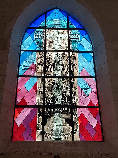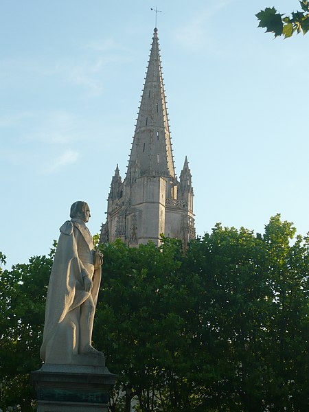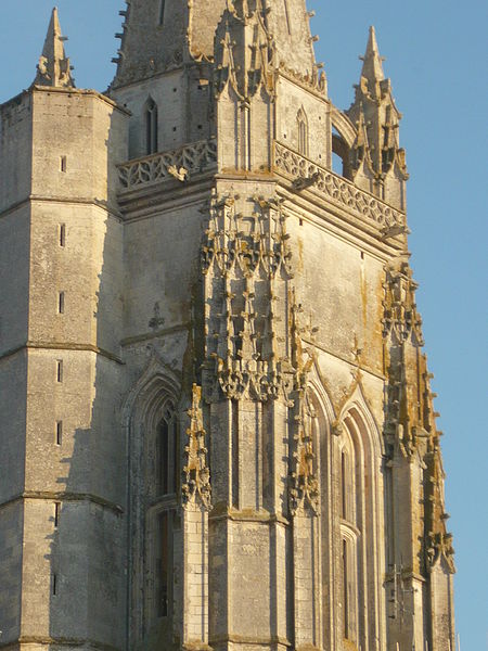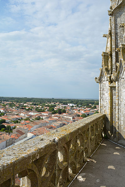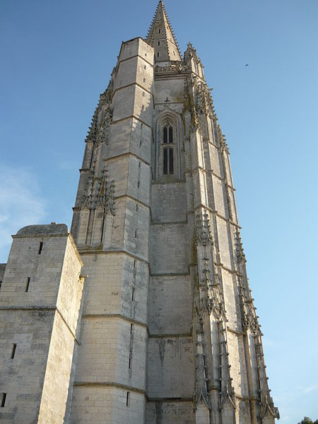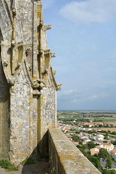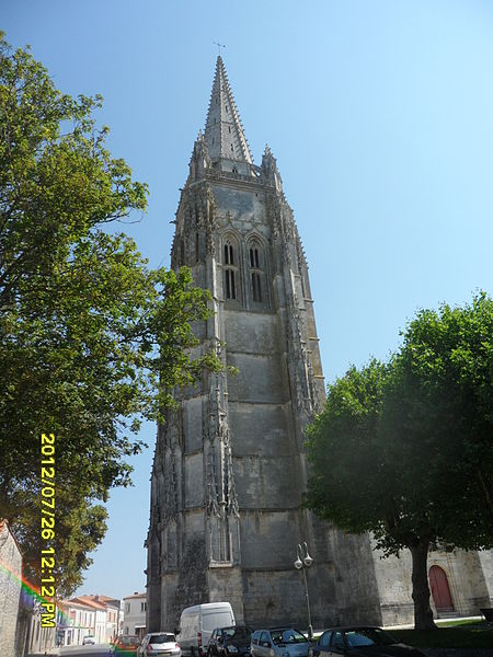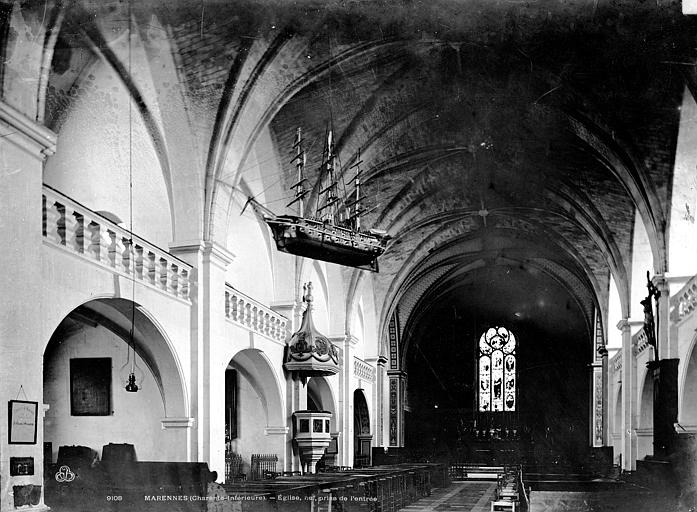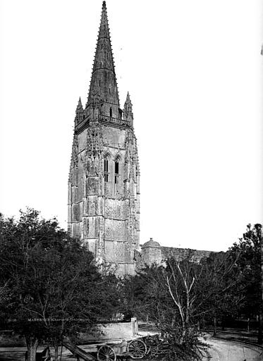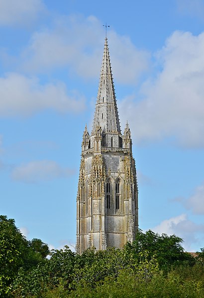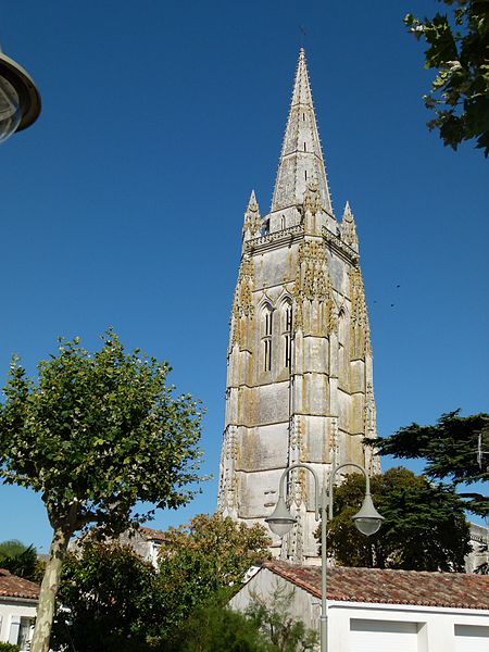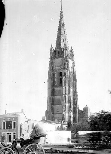 L'église Saint-Pierre est une église catholique de Marennes (Charente-Maritime), située dans le centre historique près d'une grande place et classée monument historique en 1840. Ses origines remontent au moins au début du XIe siècle, attestées par une donation de 1047 au monastère de Saintes. Une construction romane existait déjà au XIe siècle et l'édifice a subi plusieurs campagnes de réédification du Moyen Âge aux siècles modernes. La tradition rapporte que, durant les guerres de Religion, l'église servit à la fois de temple et de forteresse pour les catholiques assiégés. À la fin des conflits, l'édifice fut en grande partie ruiné ; seul le clocher subsista et les vestiges de l'ancienne église furent démolis autour de 1600. La reconstruction commença en 1602 et s'acheva au XVIIIe siècle. L'édifice actuel, d'allure classique, présente une nef unique de cinq travées bordée de chapelles latérales surmontées de tribunes à balustrades. Le chœur, de deux travées, est éclairé par de profondes baies garnies de vitraux du XIXe siècle et conserve des fresques endommagées de la même période. Les voûtes, réalisées au XVIIIe siècle, sont en anse de panier. L'intérieur abrite plusieurs ex-voto d'inspiration marine, une statuaire datée des XVIIIe au XXe siècles et un orgue de chœur du XIXe siècle, inscrit aux monuments historiques en 1986 et toujours en état de fonctionnement. L'église fut également siège d'un archiprêtré ; la liste des titulaires figure à l'entrée du sanctuaire. Le clocher constitue l'élément le plus remarquable : il s'élève à 85 mètres, accessible par 289 marches, et ses dimensions répondent à la nécessité de servir d'amer pour le bassin de Marennes-Oléron. Visible de loin, il domine la ville et est devenu l'emblème de Marennes. De plan quadrangulaire à la base, le clocher présente des contreforts surmontés de frontons triangulaires et une flèche octogonale en pierre de taille, garnie de crochets saillants et de triangles aux ouvertures. Quatre clochetons aigus ornent la base de la flèche sur chaque face ; le clocher est de style ogival et évoque la flèche de la basilique Saint-Eutrope de Saintes. La sonnerie comporte quatre cloches de volée : Jeanne-Ernestine (ré3, 1 275 kg), Henriette-Marie (mi3, 980 kg), Marguerite-Marie-Renée (fa#3, 760 kg) et Théodora-Félicie (la3, 401 kg). Jeanne-Ernestine et Théodora-Félicie furent fondues en 1886 par Georges Bollée à Orléans, Henriette-Marie en 1776 par Dupont, fondeur du Roy à Rochefort, et Marguerite-Marie-Renée en 1966 par la fonderie Paccard d'Annecy. Marguerite-Marie-Renée remplace Marie-Amélie, une cloche fêlée en 1945 et brisée en mars 1966 ; Marie-Amélie faisait partie de trois cloches fondues en 1886 par Georges Bollée et pesait 628 kilos ; ces trois cloches furent baptisées le 4 octobre 1886. Parmi les sujets photographiés figurent le porche et son tympan, l'intérieur, le détail et la vue en contre-plongée du clocher, la statue de saint Pierre et les ex-voto marins. L'église Saint-Pierre reste un repère architectural et historique majeur du centre de Marennes.