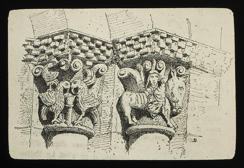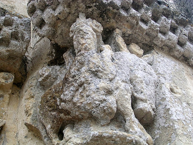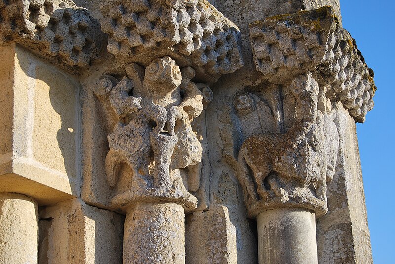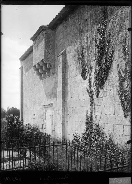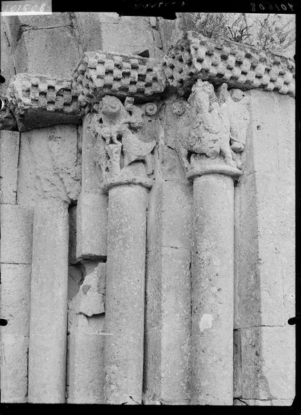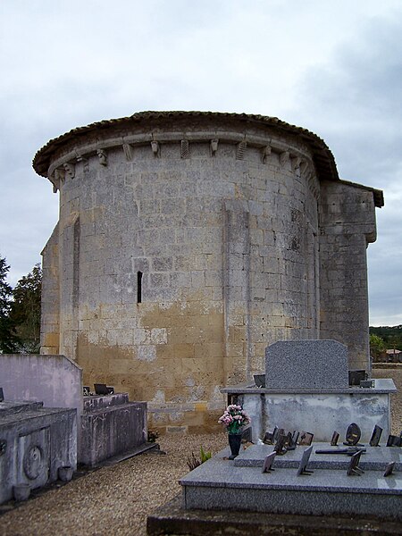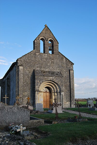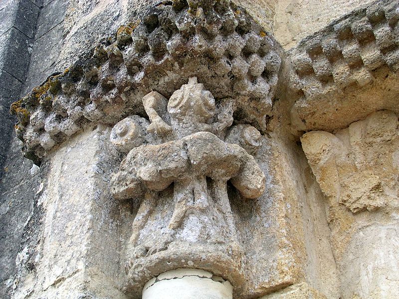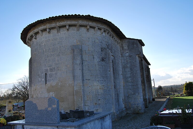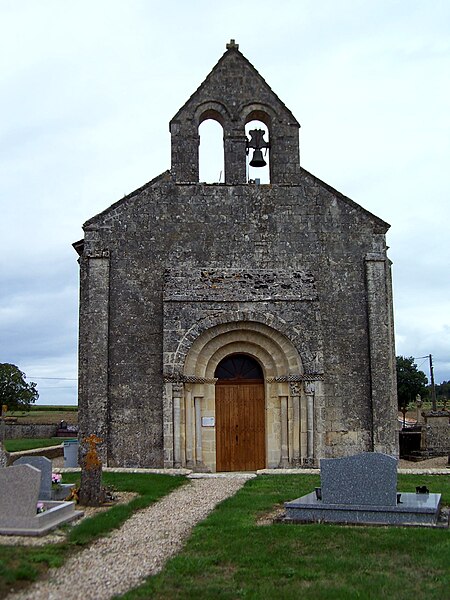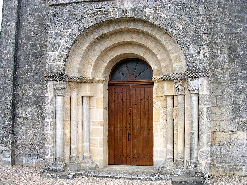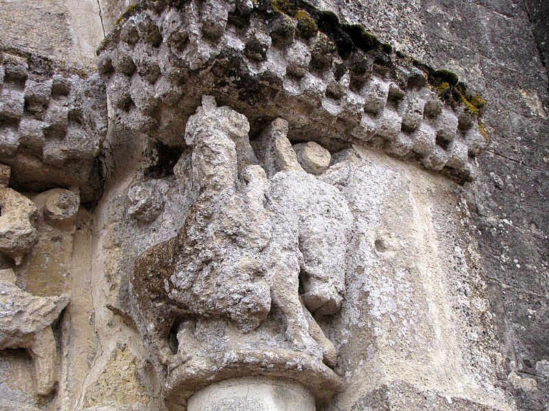L'église Saint-Pierre de Martres, en Gironde, se situe au cœur du bourg, à proximité de la route départementale D119. L'édifice, d'origine romane, date du XIIe siècle ; il a été remanié aux XIVe et fortifié au XVIe siècle, puis réparé aux XVIIIe et XIXe siècles. Le plan comprend une nef unique non voûtée et lambrissée, un chœur de plan carré et une abside semi-circulaire voûtés, éclairée par une petite baie axiale. La façade ouest présente un portail roman muni de colonnettes à chapiteaux historiés et surmonté d'un clocher-mur percé de deux baies. L'ensemble est bâti en pierres de taille ; certaines pierres du mur sud portent des marques de tâcherons. Une partie du mur nord a été refaite et le bâtiment est flanqué d'une série de contreforts plats, plus saillants au nord qu'au sud. Les remaniements extérieurs liés aux guerres de Religion comprennent la construction, sans doute au XVIe siècle, d'une échauguette sur le flanc nord, partiellement appuyée sur un contrefort et pourvue de trous de visée pour armes à feu. Sur le flanc sud, une petite porte ouverte au XVe siècle est surmontée d'une bretèche servant d'assommoir et d'emplacement de tir ; cette porte, remaniée au XVIIIe siècle, porte le monogramme IHS. À l'intérieur, la nef est dépourvue d'ornementation et deux autels latéraux ont été installés à l'extrémité orientale ; le chevet est couvert par une voûte surhaussée reposant sur un arc triomphal en anse de panier. Les sculptures romanes, attribuées à un atelier actif au milieu du XIIe siècle et inspiré notamment par l'abbaye de Saint-Ferme, ornent le portail et le sanctuaire. Le portail s'ouvre dans un avant-corps à quatre voussures ; trois d'entre elles reposent sur des colonnettes modernes dont les chapiteaux portent un tailloir et une frise continue de billettes. Parmi les six chapiteaux du portail, quatre sont d'époque romane et historiés ; trois d'entre eux sont encore identifiables : le chapiteau nord montre deux grands félins squelettiques accolés, l'un des chapiteaux sud représente des oiseaux buvant à un calice eucharistique et le second illustre la fuite en Égypte avec la Vierge à l'âne. Sous la corniche du chevet, les modillons présentent des têtes de loup ou de monstre et des motifs géométriques, sans grande leçon moralisatrice explicite. Les chapiteaux du sanctuaire offrent des scènes plus narratives et symboliques : le premier chapiteau nord évoque la vocation des premiers disciples par une embarcation et des rameurs, avec la présence d'un personnage auréolé, tandis qu'un lion et un oiseau figurent en arrière-plan ; ce type de composition renvoie aux évangiles et trouve un parallèle à l'église Saint-Sulpice de Daubèze. Le second chapiteau nord représente deux dogues déchirant une tête humaine sur la face visible des fidèles, et, sur la face cachée, un rapace fondant sur un lièvre, image allégorique de la lutte contre la luxure. Le chapiteau sud 1 montre deux lions affrontés séparés par un entrelacs central. Le chapiteau sud 2 illustre la condamnation des « hommes invertis » : deux figures accroupies ont la tête en proie à un lion et tiennent des becs de rapace ; la présence d'un médaillon dorsal associe cette scène, dans l'iconographie romane locale, à une dénonciation de l'homosexualité. L'édifice est inscrit au titre des monuments historiques par arrêté du 21 novembre 1925.