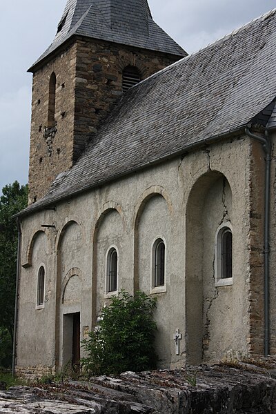 L'église Saint-Pierre de Mayrègne est un édifice catholique roman situé en bordure sud‑est du village de Mayrègne, dans la vallée d'Oueil (Haute‑Garonne). Son plan, habituel des vallées pyrénéennes, est rectangulaire et orienté est‑sud‑est / ouest‑nord‑ouest, prolongé au chevet par une abside semi‑circulaire. La nef est voûtée en berceau sur quatre travées, le cul‑de‑four prolongeant la voûte dans l'abside. De grandes arcatures rythment les élévations ; les fenêtres sont percées à l'intérieur de ces arcatures, particulièrement visibles côté sud. À l'ouest se dresse un clocher‑tour de plan carré, percé d'une baie cintrée et coiffé d'un toit à quatre pans. Une sacristie rectangulaire vient se greffer au nord‑est du corps principal. Des pierres sculptées de réemploi, intégrées aux façades, témoignent de la présence ancienne d'autels gallo‑romains dans la vallée. Le cimetière, situé au sud de l'église, abrite une croix principale protégée au titre des monuments historiques depuis le 18 novembre 1926. L'édifice lui‑même est inscrit au titre des monuments historiques le 1er août 1975. Parmi les éléments remarquables figurent le portail, le remploi d'un autel gallo‑romain et divers détails sculptés.