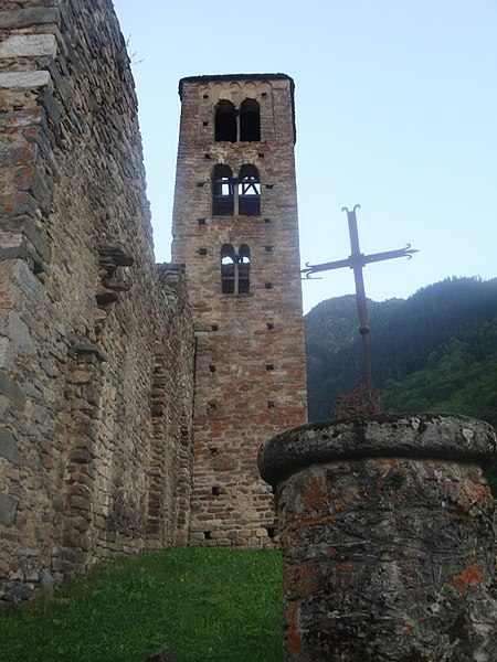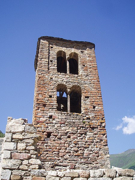 L'ancienne église Saint-Pierre de Mérens, située à Mérens-d'en-Haut sur la commune de Mérens-les-Vals (Ariège) à 1 153 m d'altitude, est un témoignage romane daté du Xe siècle. L'édifice, aujourd'hui en grande partie en ruines, ne conserve que des vestiges de la nef et son clocher ; la nef est dans un état de ruines cristallisées. Le plan comprend une nef de largeur variable, une abside de plan parabolique flanquée de deux niches profondes et un chevet de plan ellipsoïdal qui enveloppe l'ensemble ; le chœur est voûté en moellons dégrossis. Le clocher, qui flanque la nef au sud-ouest, est daté de la première moitié du XIe siècle ; de plan carré et de hauteurs marquées, il appartient au type des clochers catalans et andorrans et constitue le seul spécimen de ce type au nord-ouest du col de Puymorens. Sur ses quatre faces se succèdent trois niveaux de baies géminées, le dernier niveau étant orné d'arcatures. La maçonnerie est bien appareillée en moellons de granit, avec des emplois de schiste et de calcaire alvéolaire. L'édifice peut être rapproché, sur le plan typologique, d'exemples andorrans tels que Sant Climent de Pal ou Sant Joan de Caselles à Canillo. Les seigneurs locaux donnèrent l'église en 994 à l'abbaye Sainte-Marie de Lagrasse, donation confirmée en 1118 par le pape Gélase II ; elle dépendra ensuite de l'abbaye Saint-Volusien de Foix, situation confirmée en 1224 par Honorius III. Le village et l'église furent incendiés en octobre 1811 par les Miquelets du général Villamil, qui pénétrèrent en territoire français durant la guerre d'indépendance espagnole. Classés au titre des monuments historiques par arrêté du 26 septembre 1969, les restes de l'église ont fait l'objet d'opérations de sauvegarde : l'édifice a reçu le premier prix de la Fondation Suza en 2002, des travaux de conservation récompensés par les Rubans du patrimoine dans les années 2000, et des travaux de confortement ont été réalisés en 2012.